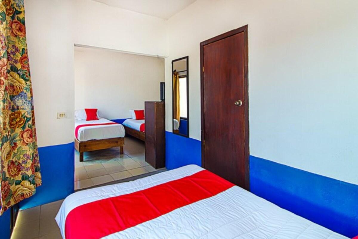 Disfruta una habitación cómoda, limpia y bien ubicada cerca del Centro Histórico. Ideal para 1 a 3 huéspedes, ya sea por trabajo o paseo. Cuenta con cama matrimonial y cama individual, aire acondicionado, baño privado, wifi y TV. Es pet friendly y tiene estacionamiento con portón. Cerca encontrarás restaurantes, antojitos, farmacias, Chedraui y tiendas para cualquier necesidad. Una opción práctica, accesible y muy bien ubicada para disfrutar la ciudad.