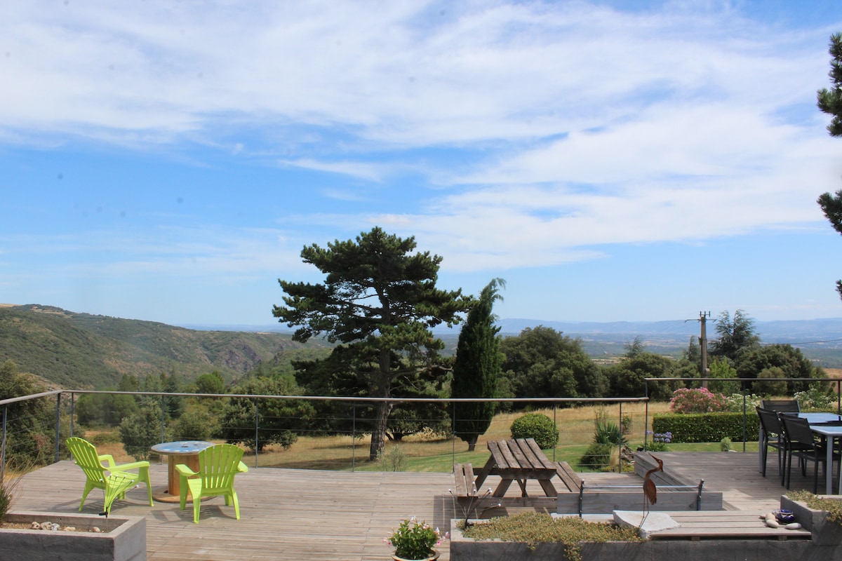 Ferienhaus inmitten einer grünen und unberührten Natur, im Herzen eines 85 Hektar großen Naturparks und vor den Toren der Montagne Noire. Das Haus hat einen atemberaubenden Blick auf die Pyrenäen sowie Carcassonne und seine Zitadelle. Eine große schattige Steinterrasse ermöglicht es Ihnen, diese außergewöhnliche Umgebung während Ihres gesamten Aufenthalts zu genießen. Vom Standort aus sind mehrere Wanderwege sofort zugänglich. Der Lac des Montagnes ist weniger als 15 Minuten mit dem Auto entfernt.