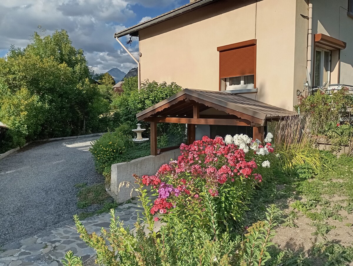 Faites une pause et détendez-vous au calme à 5 minutes en voiture du téléphérique de Briançon /Serre Chevalier. Implantée dans un quartier résidentiel paisible avec une vue magnifique. Départ immédiat de nombreuses randonnées pédestres et VTT Vous avez la possibilité de ranger votre matériel de sport à l’abri dans l’entrée (Velo skis luge) Deux places de parking devant l’entrée avec recharge pour voiture électrique. Une terrasse et pelouse permettront des repas en extérieur