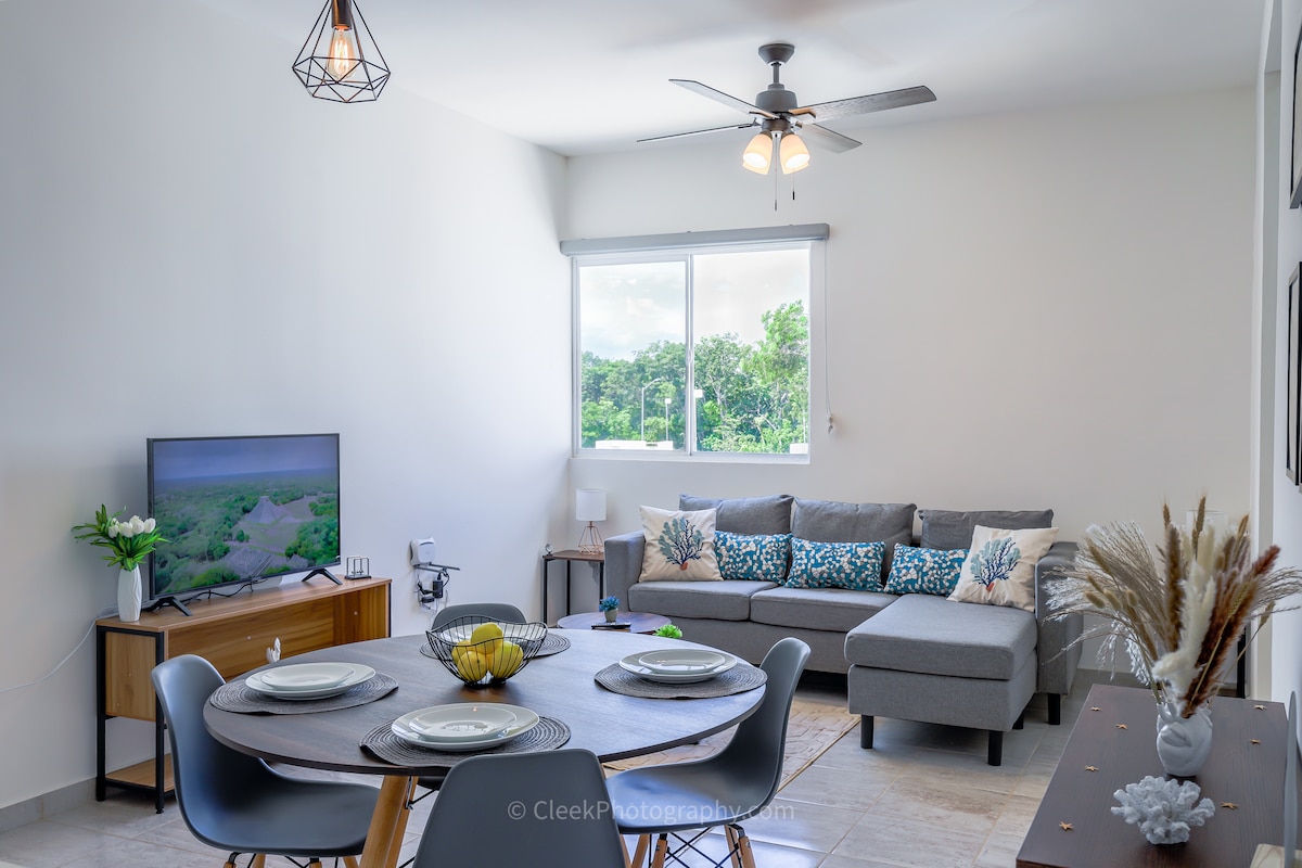 Wie stehen die Chancen, eine außergewöhnliche, schöne und komfortable Unterkunft in Puerto Morelos mit genügend Platz und Annehmlichkeiten zu finden, um sich mit deiner Familie und deinen Freunden zu entspannen und zu genießen? Dies ist der perfekte Ort für Sie! Unsere Unterkunft befindet sich in einer charmanten, privaten und umzäunten Wohnanlage und bietet alles, was du für einen stressfreien Kurzurlaub benötigst. Genieße Zugang zu einem Pool, einem Fitnessraum im Freien und einer Terrasse mit Liegestühlen in einer sicheren Umgebung mit 24/7-Sicherheitsdienst.