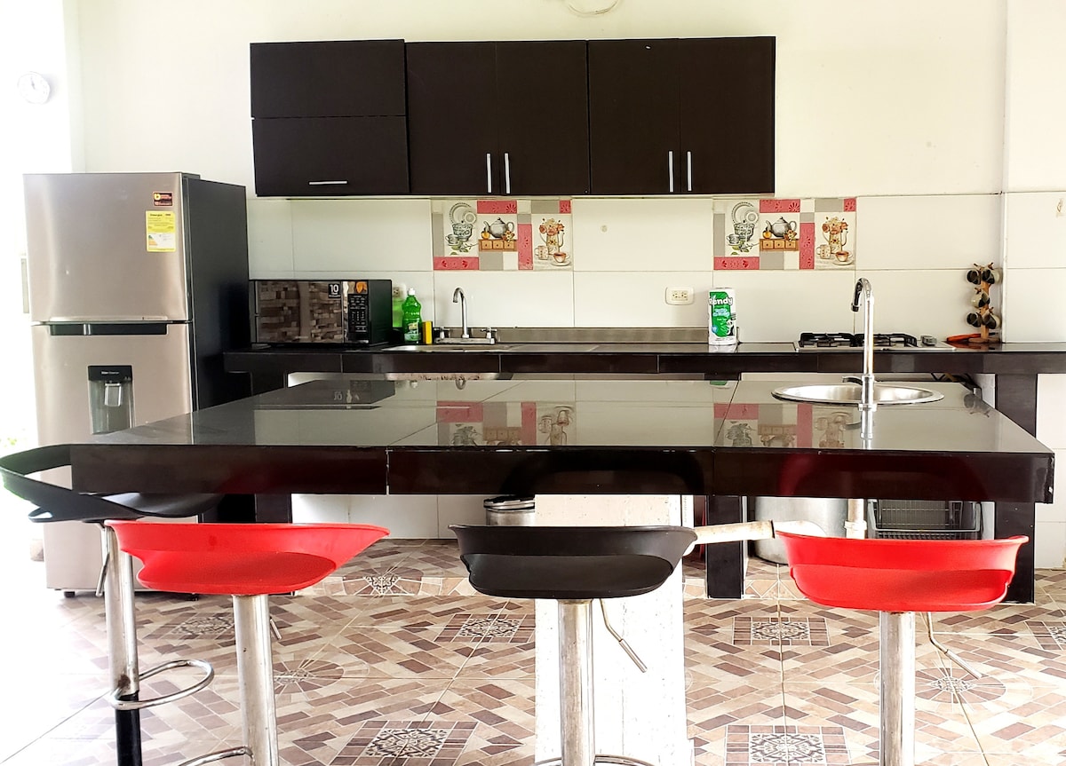 Hermosa quinta campestre con ambiente familiar; con zonas verdes, árboles, jardines; piscina, jacussi, kiosko, 6 habitaciones con aire acondicionado, 5 baños privados, 2 baños sociales, cocina, sala-comedor, sala de star, parque infantil, BBQ, horno y estufa artesanal, sauna (adicional) alto confort y parqueadero privado para 5 vehículos gratuito, conexión wifi fibra óptica, a cinco minutos del aeropuerto, cerca ruta ciclo montaña, senderismo. restaurantes.