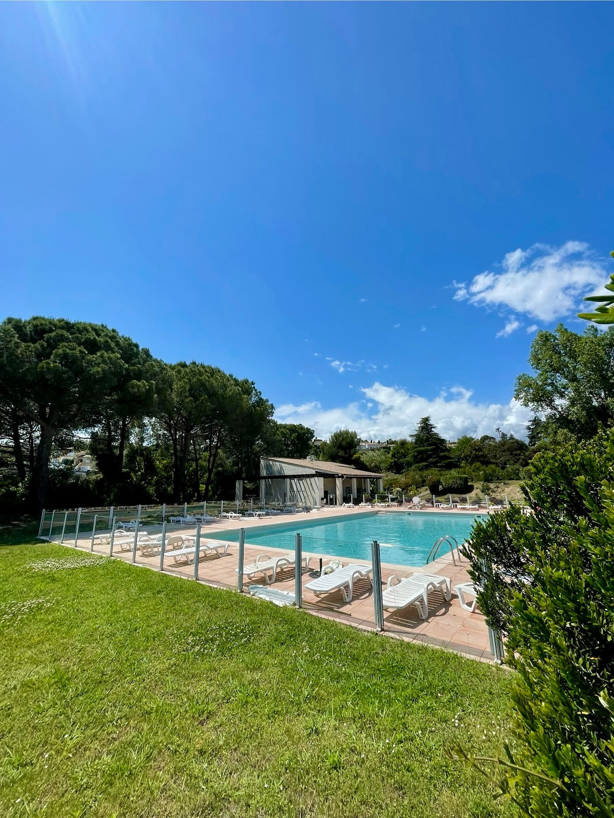 Agréable appartement 2 pièces climatisé entièrement équipé 41m² - Magnifique terrasse 30² - Résidence verdoyante, calme et sécurisée avec piscine à 500m env, tennis, espace vert, lac, parking privatif. Wi-Fi -TV Environnement paisible, parfait pour se ressourcer Plages commerces et gare SNCF à seulement 1 à 1,4 km En voiture proche Antibes, Cannes, Nice, Saint-Paul de Vence Linge de maison inclus pour un séjour en toute tranquillité. Non fumeur -Pas d’animaux - Respect du voisinage indispensable