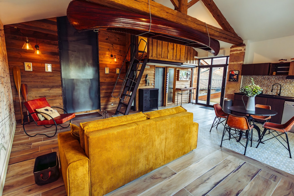 Kommen Sie und tanken Sie neue Energie in unserer Lodge mit traditioneller Architektur, gemischt mit Moderne. Ein Cocktail aus Massivholz und Natursteinen in einer renovierten Scheune, mit allem Komfort, im Herzen der Wälder des Beaujolais Vert. Treffpunkt für Naturliebhaber, Ausgangspunkt für viele Spaziergänge... Die Trennung vom Alltag reicht Ihnen die Hände...