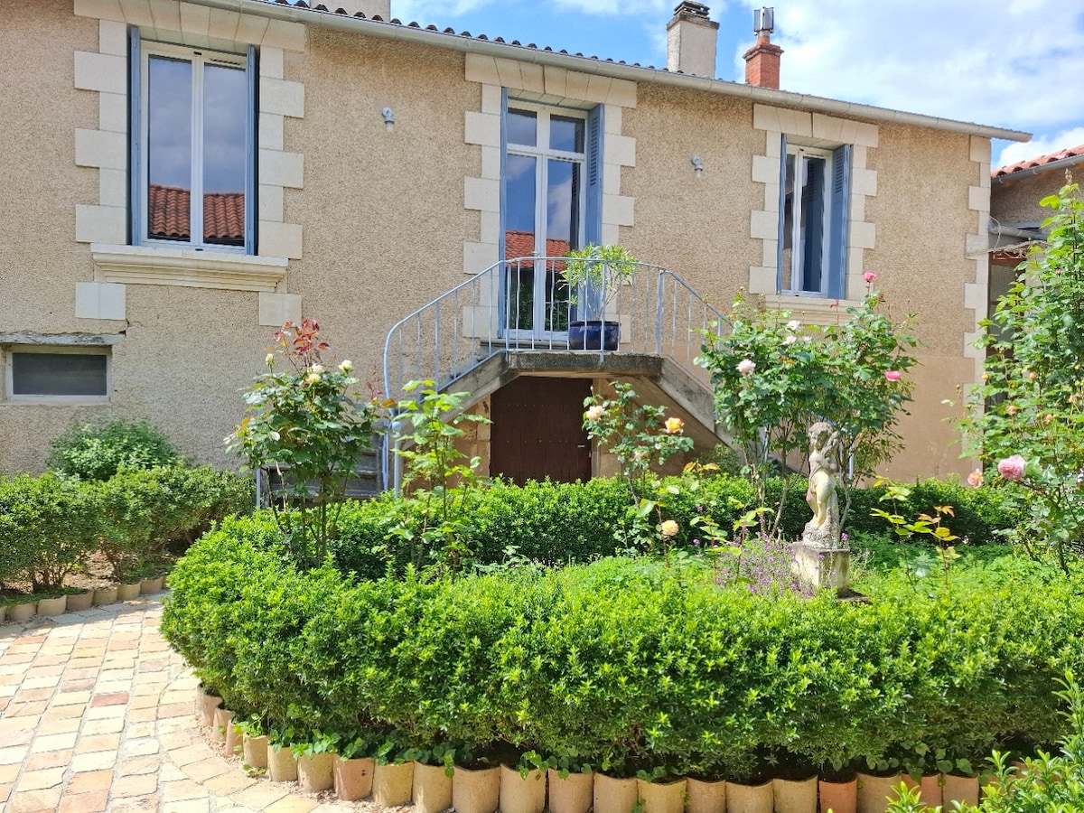 Au calme au bord de la rivière l'Auxance, maison de caractère ( ancien relais de chasse du 1er Préfet de la Vienne ) à 1.5 km du bourg de Vouillé avec toutes les commodités. Maison au calme et authentique dans un cadre verdoyant avec une grande cour privative et des bâtiments de ferme en pierres qui apportent un charme rustique et propice au repos. Pour vos sorties, à 20 km le Futuroscope, Poitiers, les villes à découvrir Saint-Savin, Chauvigny, Montmorillon la cité de l'Ecrit et le Puy du Fou.