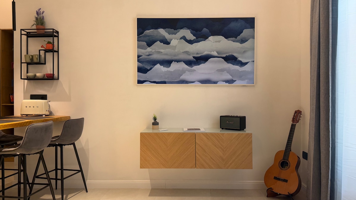 Mein Haus ist ein gemütliches Dachgeschoss, sehr hell und sehr ruhig, in einem historischen Gebäude auf einem kleinen Platz im Zentrum des Vomero. Sehr gut mit dem öffentlichen Verkehrsnetz verbunden und neben zahlreichen Bars, Restaurants und Geschäften zum Einkaufen. Die Mansarde besteht aus einem Schlafzimmer, einem Badezimmer, einer hellen Küche, von der aus man auf eine ausgestattete Terrasse gelangt, und einem Wohnzimmer, das auch mit einem Schlafsofa für 1 und 1/2 ausgestattet ist.