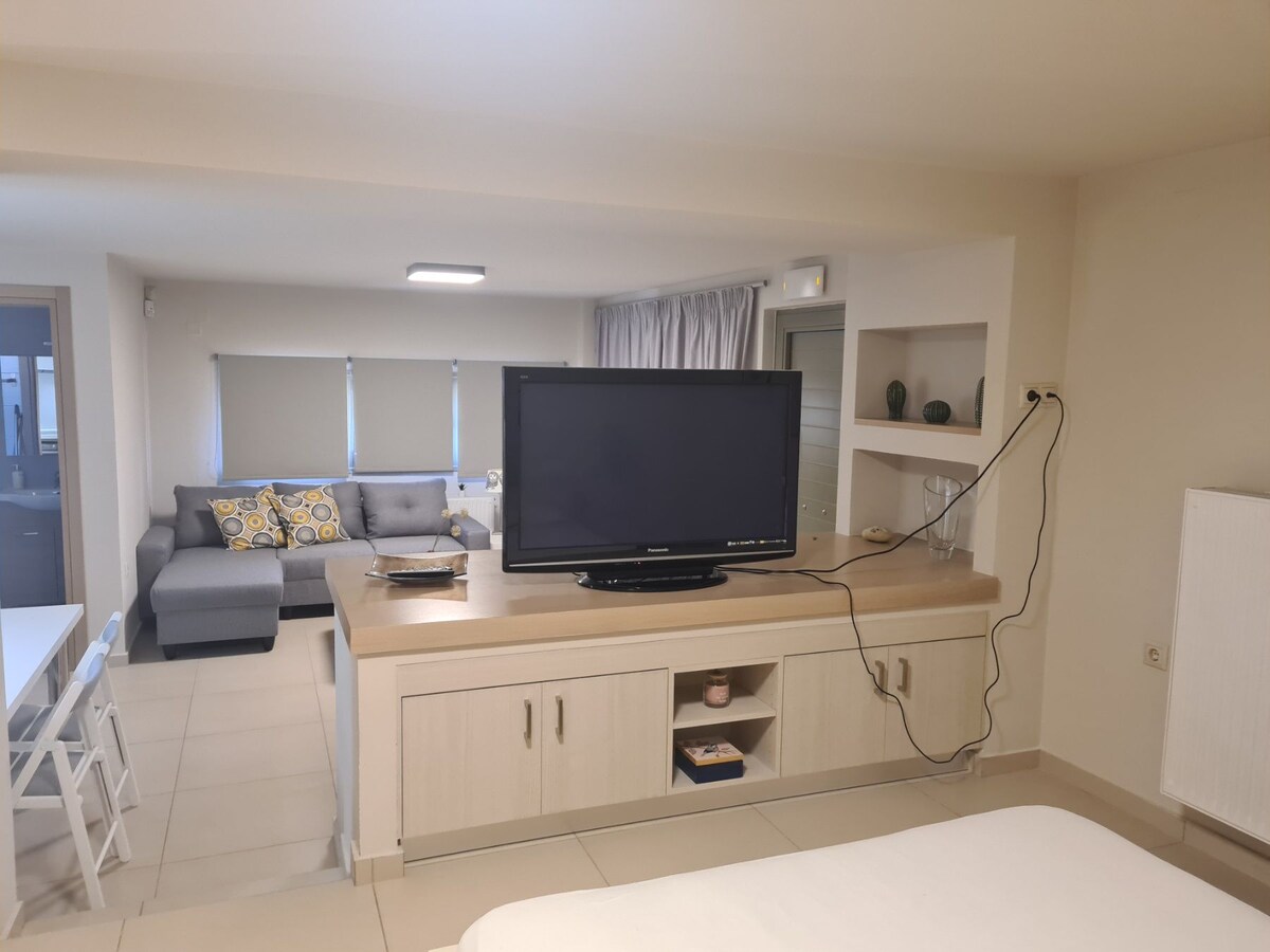 Unser Haus ist eine elegante und gemütliche Wohnung in einer ruhigen Gegend in der Nähe des Stadtzentrums von Heraklion. Alle ihre Ausstattungen und Dekorationen sind modern und brandneu, von uns mit Liebe, Sorgfalt und Stil ausgewählt, damit sie dem Besucher Komfort, ästhetische Einfachheit und Entspannung bieten kann. Ihre Lage hilft dem Besucher, sie als „Ort“ zu nutzen, um unsere Stadt (10 Gehminuten vom Stadtzentrum entfernt) sowie unsere schöne Insel zu entdecken. Ideal für Paare, Familien, Gruppen von Freunden und Geschäftsreisende.