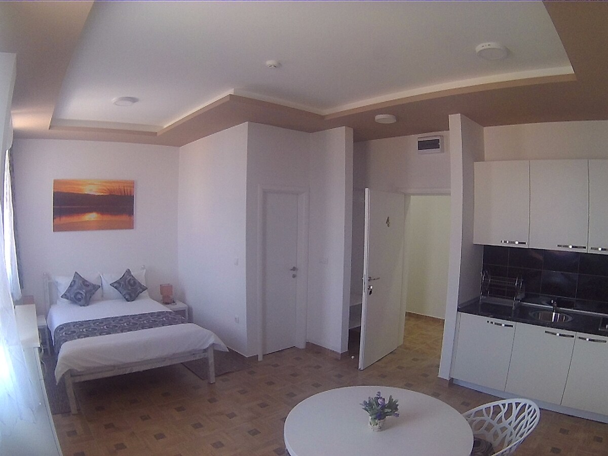 Das Mint&White Studio verbindet ein modernes Design mit einem Wohngefühl. Sie befindet sich in einer ruhigen Lage, in der Nähe des Zentrums von Banja Luka. Ideal für Paare, Alleinreisende oder Geschäftsreisende. Genieße Sauberkeit, komfortable weiße Bettwäsche, schnelles WLAN, eine reiche TV-Videothek, Aussicht und kostenlose Parkplätze in der Garage. Restaurants, ein Park, eine Promenade, Einkaufszentren und Sportmöglichkeiten liegen ganz in der Nähe. Herzlich willkommen!