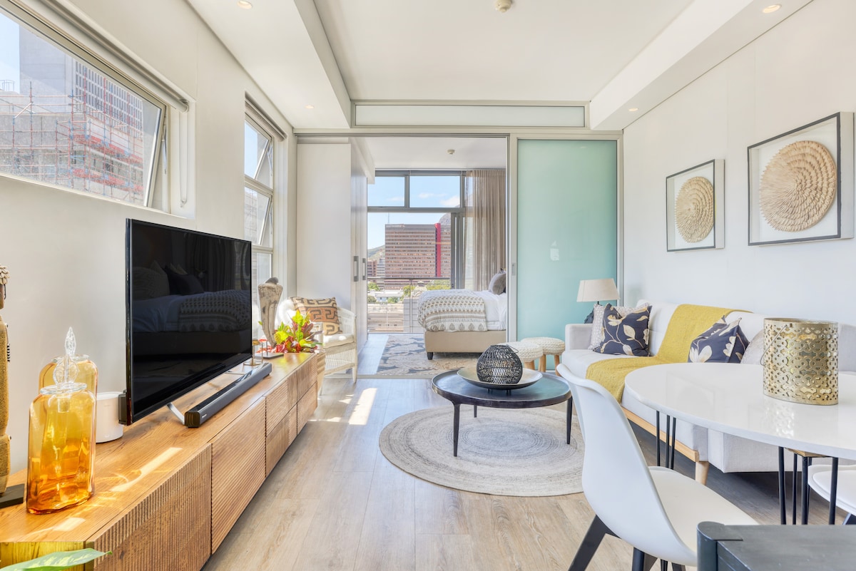 Blicke auf die Skyline der Stadt durch raumhohe Fenster lassen reichlich Licht herein. Treten Sie auf den Balkon aus dem Schlafzimmer für frische Luft und einen Blick auf die Stadt und den Tafelberg. Schlafsofa im Wohnzimmer. Moderne, voll ausgestattete Küche. Geschmackvolle Einrichtung überall. Tolle Lage neben dem Parlament und den Company Gardens. In der Nähe der trendigen Long Street. 24-Stunden-Concierge in der Lobby. Sehr unwahrscheinlich, dass sich der Lastabgleich (Stromausfälle) auf dieses Gebäude auswirken würde, daher bleibt der Strom einschließlich des Internets eingeschaltet. Die Wohnung befindet sich im 13. Stock und wurde 2017 neu renoviert, um alles zu bieten, was du von einem 24-Stunden-Sicherheitsblock erwarten würdest. Es gibt keinen Innenparkplatz, aber draußen gibt es sichere Parkplätze auf der Straße. Unbegrenztes WLAN. Melde dich bei Security (24 Stunden) an und hole deine Schlüssel mit uns auf der 12. Etage ab. Wir haben 3 Aufzüge und zwei Treppen (wenn du 13 Etagen erklimmen möchtest!). Zwei der Aufzüge wurden renoviert. Du kannst über den AIRBNB-MESSENGER KOMMUNIZIEREN Das Apartment befindet sich in der Nähe von Geschäften, Bars und Restaurants. Das Touristenzentrum, der Greenmarket Square, Märkte, der CitiBus und die Wanderungen sind nur wenige Gehminuten entfernt. Schlendere am Parlament durch die Company Gardens vorbei. Slave Lodge auf der anderen Straßenseite. In der Nähe der trendigen Long Street. Nahe gelegene Myciti-Bushaltestelle Uber ist normalerweise ein paar Minuten entfernt und du kannst den MyCiti-Bus nehmen (du musst die Reisekarte im Voraus kaufen). Bushaltestellen für 3 Routen (einschließlich der Route zum Tafelberg und zum Strand von Camps Bay) sind weniger als 5 Gehminuten entfernt. Der offene Citi Hopper-Bus hält ebenfalls 5 Minuten von der Tür entfernt. Die Stadt ist sicher zu Fuß zu erreichen, aber du musst dir bewusst sein und keine Wertsachen blinken. Spät in der Nacht ist es am besten, ein Uber zu nehmen, vor allem, wenn du von der Hauptstraße der Party zurückkommen möchtest ( Long Street) Die Wohnung befindet sich in einer der sichersten Gegenden und du kannst Autos über Nacht auf der Straße unten parken.