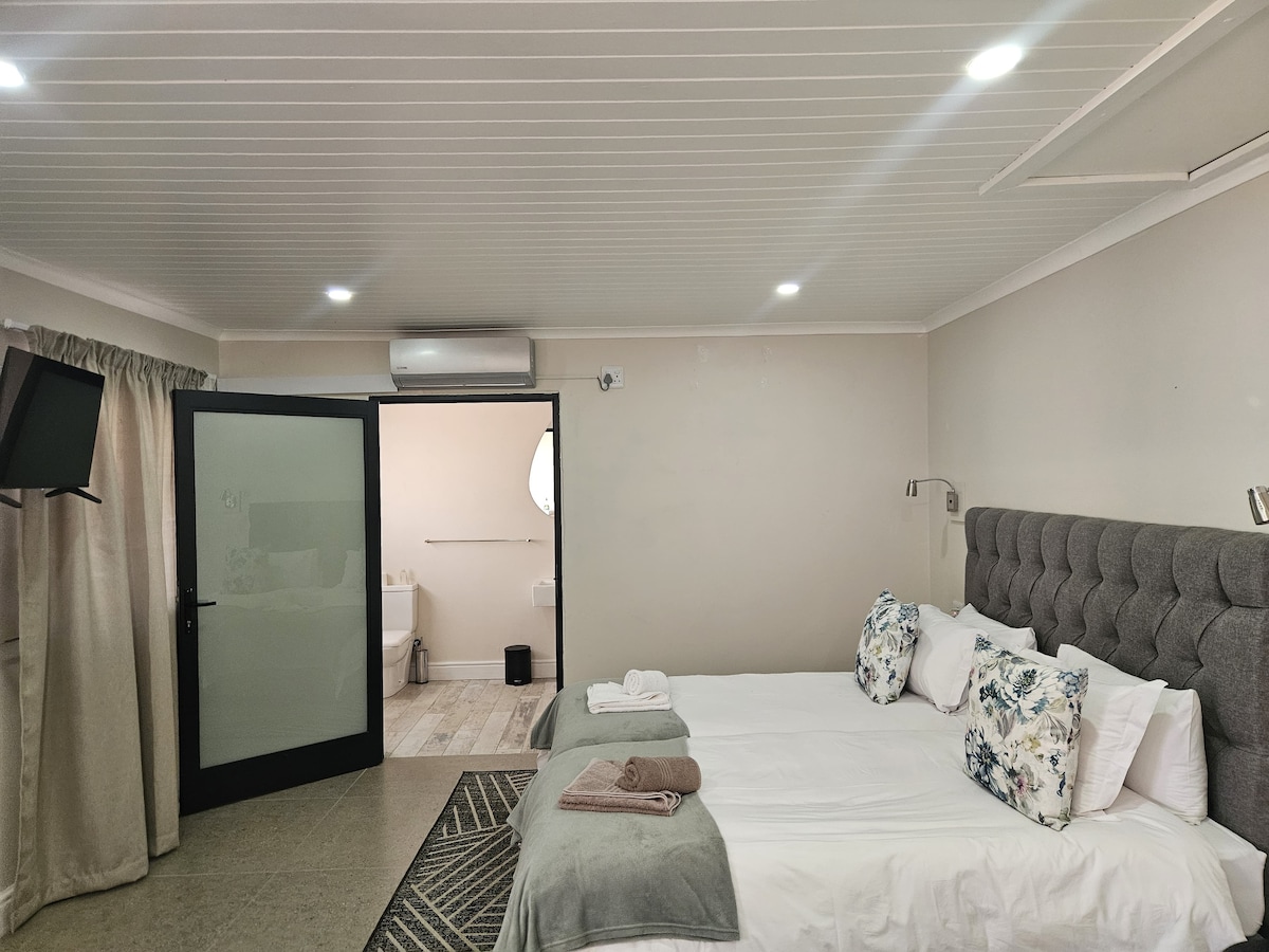 Wir bieten unseren Gästen eine private Selbstversorgerwohnung im Haupthaus an. Schlafzimmer 1 verfügt über ein Doppelbett. Es gibt auch ein Doppelbett im offenen Wohnbereich. Ein Badezimmer mit einer Dusche, Badewanne und Toilette. Auch eine separate Toilette. Voll ausgestattete Küche. TV in der Lounge. Außenterrasse. Ein Grill-/Braai-Bereich. Wir bieten Tee und Kaffee. Auch Shampoo und Seife. Bettwäsche und Handtücher werden bereitgestellt. In Strandnähe und etwa 20 Gehminuten von den Restaurants und Geschäften entfernt. In einer ruhigen Gegend gelegen.