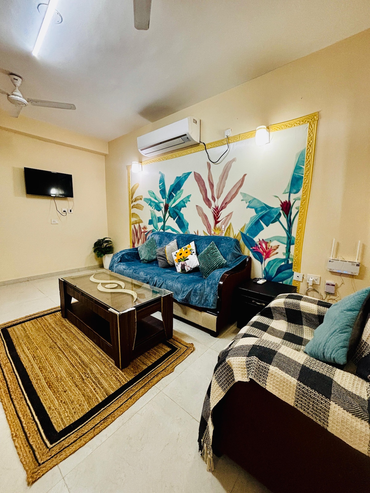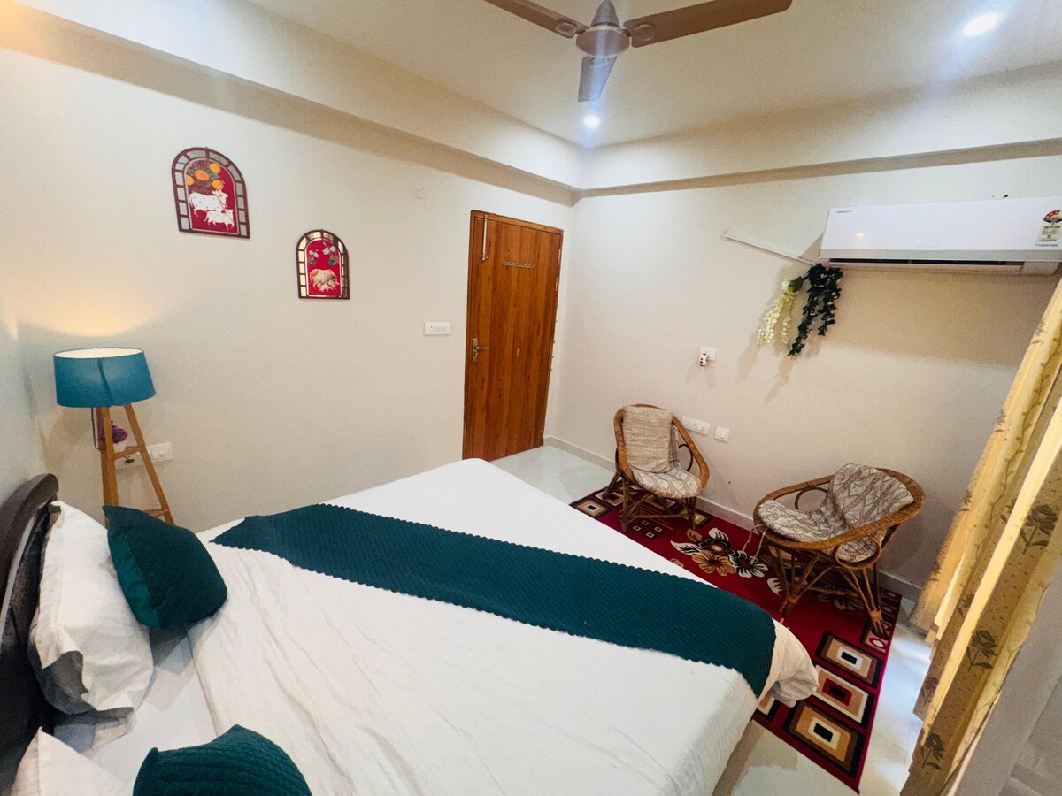 *Relax and unwind in this peaceful & luxury apartment with unique decor,ideal for couples or a family of three. Enjoy modern comforts with easy access to Vrindavan’s temples and attractions. *Premanandji padhyatra darshan-400m away (walking distance 5 minutes) *Start your day with yamunaji darshan & peacock sounds with beautiful sunrise from cozy balcony.Sink into a comfortable bed with positive vibes.