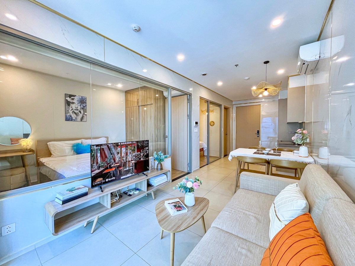 Mia Home is located on the 35th floor of The Song Building- 1 floor to the rooftop pool. The apartment is designed in vintage, romantic and cozy style, best suitable for couples or group of friends who love romantic vibe but still want some modern convenience. Free amenities you can enjoy during your stay: - Infinity Rooftop Pool (Close on Monday) - Sauna & Gym - Water park- children pool (Close on Thursday) - 5 minutes to the beach and 5 minutes to the nearest super market