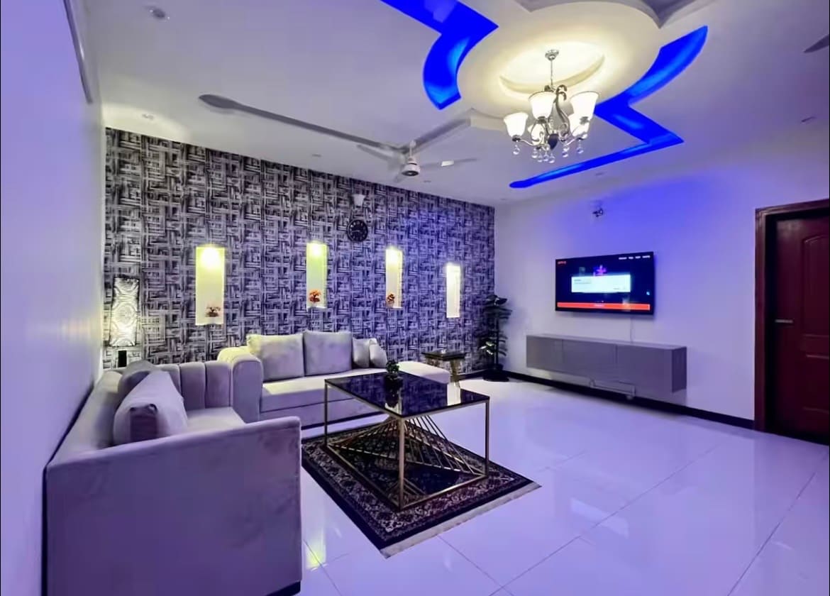 Enjoy a comfortable stay in our fully furnished Kanal house located in Multi Gardens B-17, Islamabad. The location offers quick access to the city—just 15–20 minutes from major attractions including Centaurus Mall, Diplomatic Enclave, F-10, and Blue Area. Traveling is easy too: Islamabad International Airport (ISB) is only 35 minutes away via the M2 Motorway. The neighborhood is peaceful and family-friendly, with nearby amenities such as a zoo, kids’ play area, parks, and Markets.