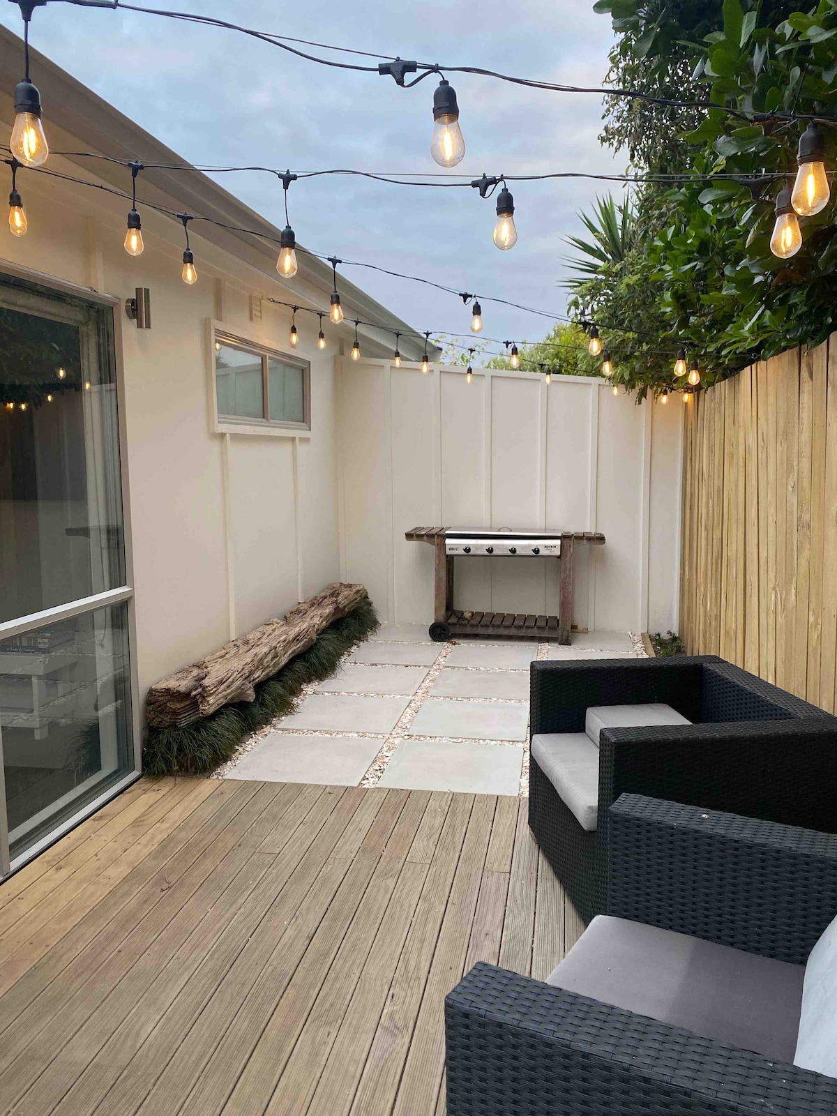 We welcome you to stay in our self contained studio, positioned on the ground floor of our home. If you’re concerned with noise, this perhaps isn’t the place for you as our living room is directly above the studio. We have a young family & 2 dogs who can be noisy at times. Generally from 8pm to 7am it’s quiet. The 1x bedroom studio features kitchen, bathroom, living space with aircon, an outdoor courtyard & roadside parking. It has its own private access, seperate from the main house entrance.