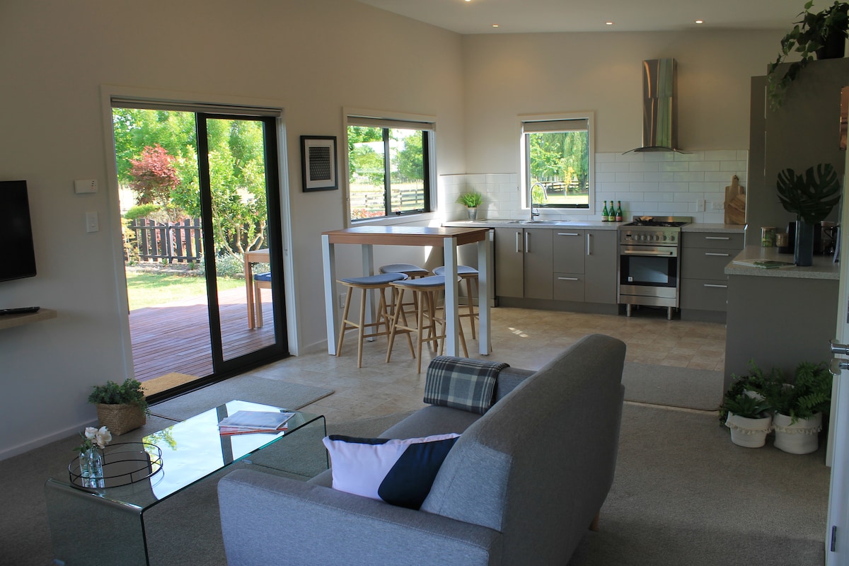 Das Ferienhaus ist für ein Paar gebaut, um Ruhe und entspannenden Komfort auf dem Land zu genießen. Spiele ein wenig Golf – Putting-Green vor deiner Tür; spaziere durch unsere weitläufigen Gärten und die hügelige Landschaft. Sag Hallo zu den freundlichen Hühnern, Pferden und Schafen. Ein herrlicher Rückzugsort mit voll ausgestatteter Küche, um deine Gourmet-Feste zu kreieren. Genieße das bequeme Bett, gemütliches Lesen am Winterkamin oder die Klimaanlage zur Abkühlung im Sommer, einen Innenhof mit Aussicht. Eine malerische 15-minütige Fahrt zu den Restaurants von Greytown, Martinborough und Carterton.