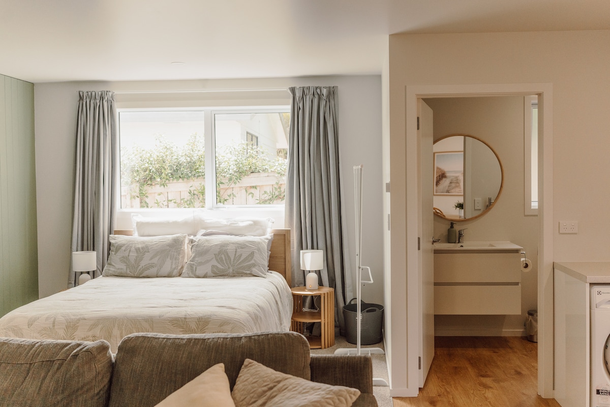 Dieses neu gebaute Studio befindet sich auf der Rückseite unseres großen Bereichs und ist der perfekte Ort für deinen nächsten Strandurlaub. Nur 2 Gehminuten vom Strand und 7 Gehminuten vom örtlichen Einkaufszentrum entfernt. Das Studio verfügt über eine eigene Terrasse und einen Rasenbereich, um den Sonnenschein zu genießen und die atemberaubenden Sonnenuntergänge über den Papamoa Hills zu bewundern. Ausgestattet mit allen neuen Gegenständen, haben wir keine Kosten gescheut, um sicherzustellen, dass du von deinem Aufenthalt nicht enttäuscht sein wirst.