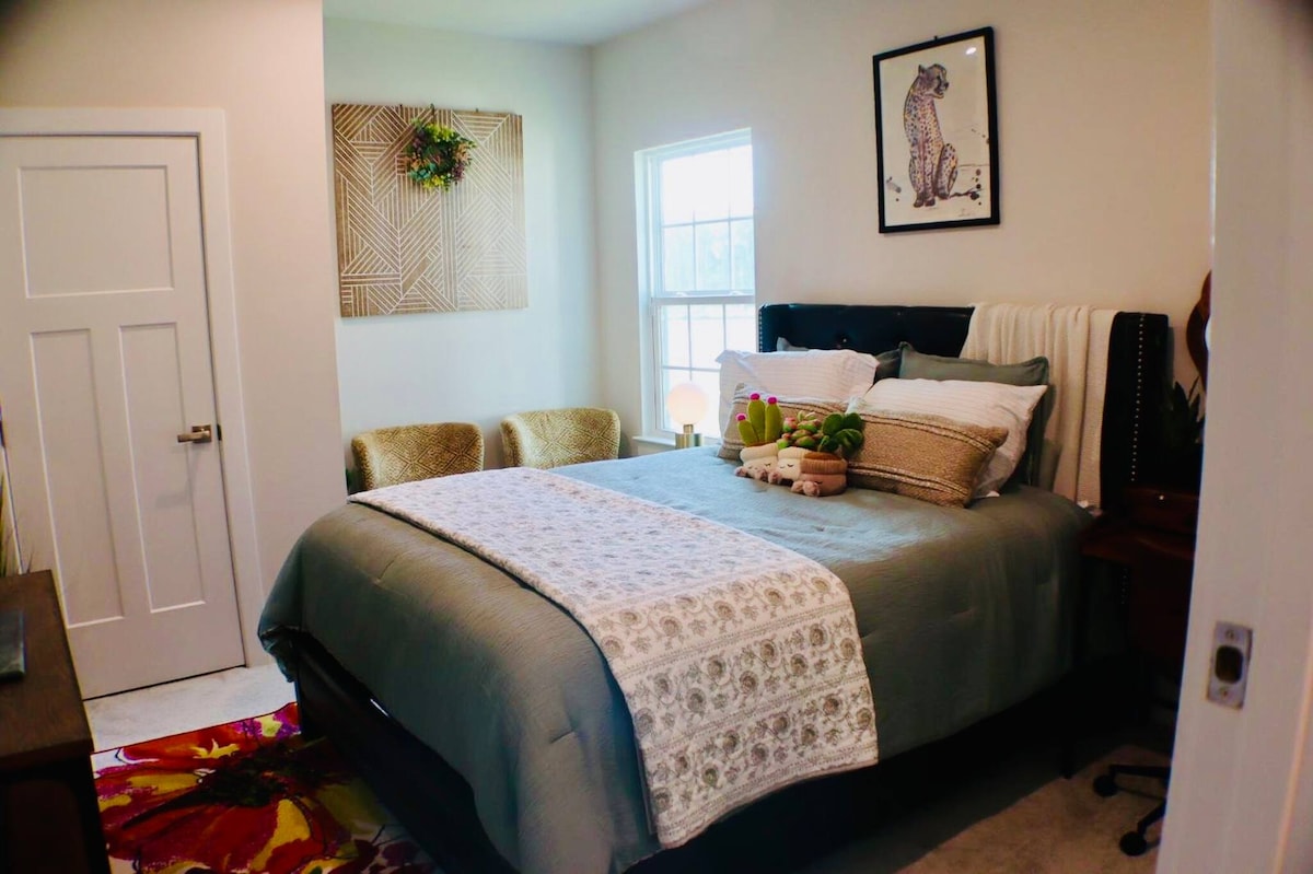 NATUR + PFLEGE treffen in dieser frischen, geräumigen, modernen, gemütlichen, ruhigen Erholung für Leistungsträger auf höchsten Komfort. Zentral in Midtown gelegen, nur wenige Minuten von Hauptstraßen, Krankenhäusern, North Hills, Einkaufsmöglichkeiten, Restaurants, Nachtleben und Radwegen entfernt. Auf der anderen Straßenseite befindet sich der Eastgate Park, ein privater See, Wanderwege, Tennisplätze und Spielplätze. Ein Bach verläuft an der Rückseite deines großen Gartens. Dein Gastgeber ist ein langjähriger NC-Bewohner, ein Veteran der Gastfreundschaft und begrüßt besondere Wünsche.