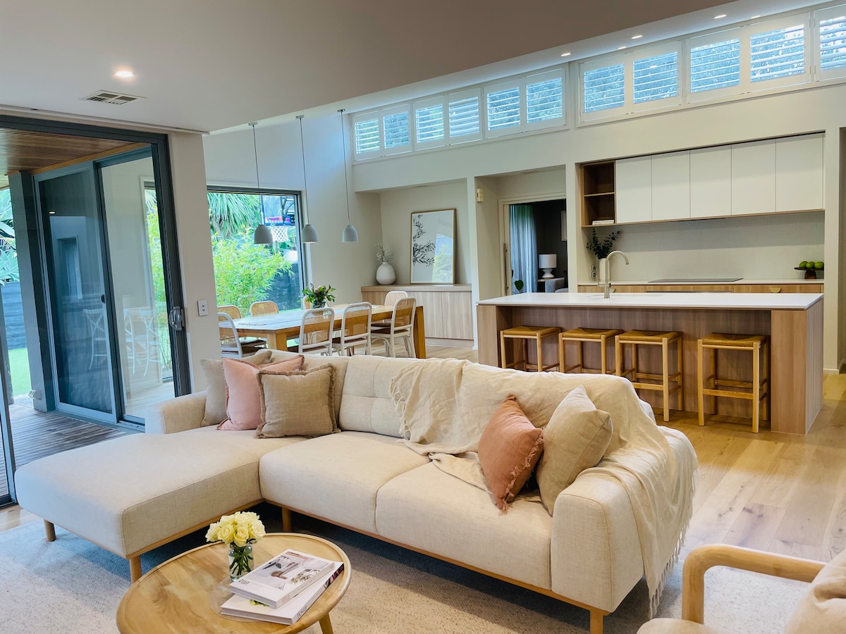 Lebe wie ein Einheimischer im Seabirds Landing, einer malerischen, modernen Oase mit 5 Schlafzimmern, die mit einem Vintage-Twist an der Küste eingerichtet und mit allen Annehmlichkeiten ausgestattet ist, die du für einen traumhaften Urlaub benötigst. Eingebettet in eine idyllische Lage inmitten der Hügel von Old Ocean Grove und nur wenige Gehminuten von der Stadt, dem Strand und einem Supermarktkomplex entfernt. Lehne dich zurück und genieße das ruhige Leben, schalte den Plattenspieler ein, mach dir eine Platte und sonne dich auf der weitläufigen Holzterrasse.