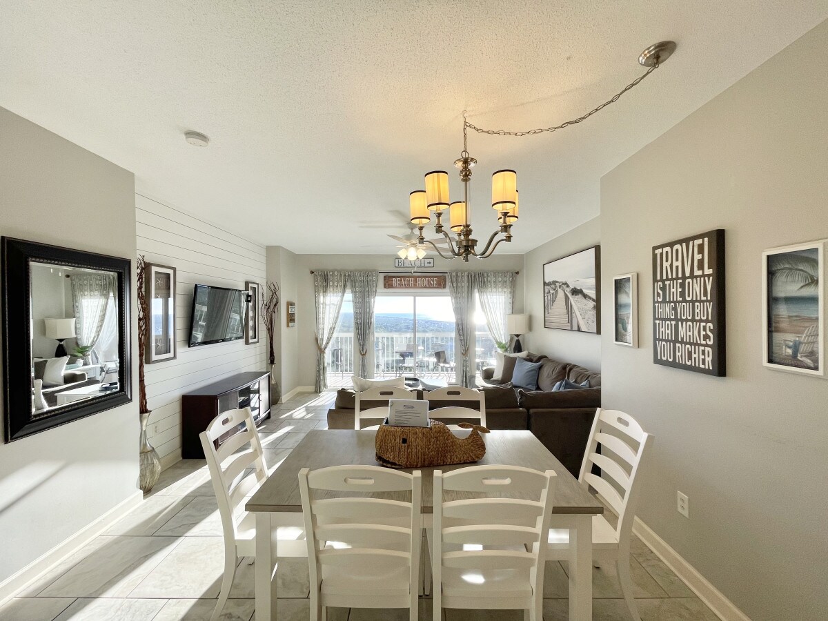 Diese Eckwohnung im Tidewater Beach Resort im 7. Stock bietet einen atemberaubenden Panoramablick auf die endlose Küste der smaragdgrünen Golfküste. Vom privaten Balkon oder dem Komfort des Wohnzimmersofa oder des Esstisches genießen Sie atemberaubende Sonnenuntergänge über dem Meer und schillernde Lichter der Stadt bei Nacht. Das Resort verfügt über unglaubliche Annehmlichkeiten, darunter zwei Pools im Lagunenstil, einen beheizten Innenpool, Whirlpools, ein hochmodernes Fitnesscenter mit einem römischen Spa, ein Kino und Zugang zum Privatstrand.