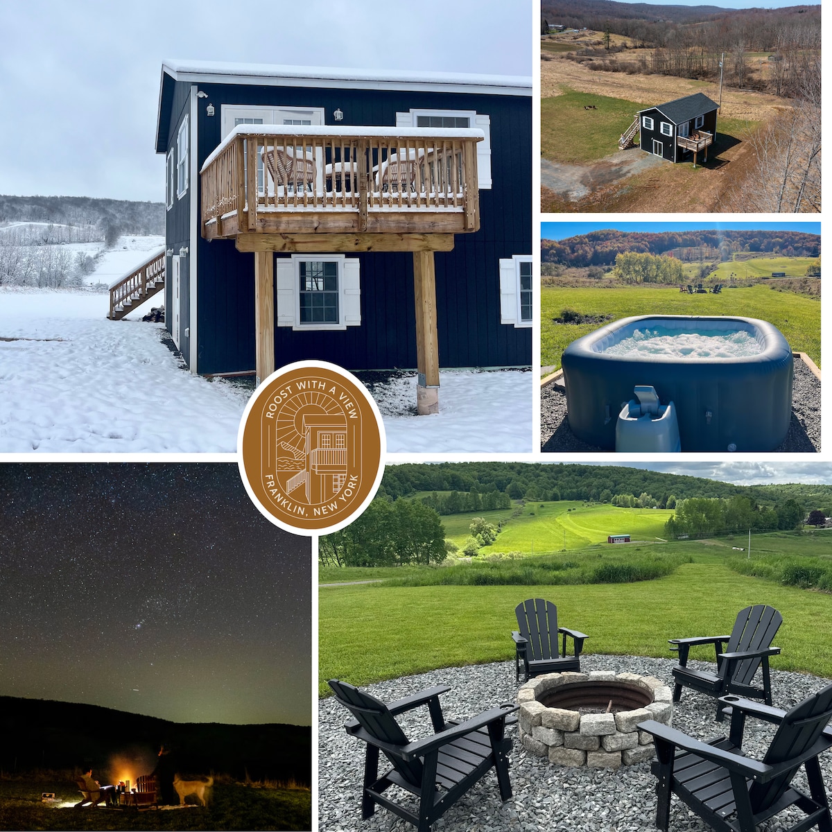 The Roost liegt am Fuße der Catskills und bietet einen Blick auf weitläufige, sanfte Hügel. Beginne deinen Morgen mit Kaffee auf dem Schlafzimmerbalkon, während die Sonne aufgeht, und schließe den Tag mit einem schönen Sonnenuntergang auf dem vorderen Balkon. Entspanne dich im Whirlpool, schlendere zum Bach oder versammle dich mit anderen unter dem Sternenhimmel um die Feuerstelle. Ideal für romantische Ausflüge, Zeit mit Freunden oder der Familie oder einfach nur zum Auftanken in der Natur. Sie werden sich erfrischt und verjüngt fühlen. Folge uns auf IG: @roostwithaview