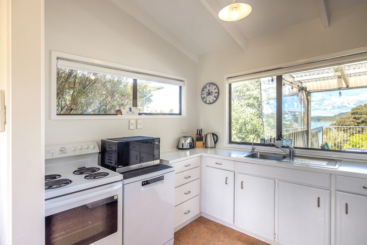 Perfectly located in a genuine Little Oneroa position less than 5 minutes walk to gorgeous Little Oneroa Beach (approx 350 metres away) with its beautiful white sands, a playground for the kids and a conveniently located dairy. Little O Bach is all about comfort, relaxation and feeling at home with all of the conveniences of a great location with lots of sun, big covered decks for entertaining and of course a wonderful view. The ideal couples retreat or family get away!