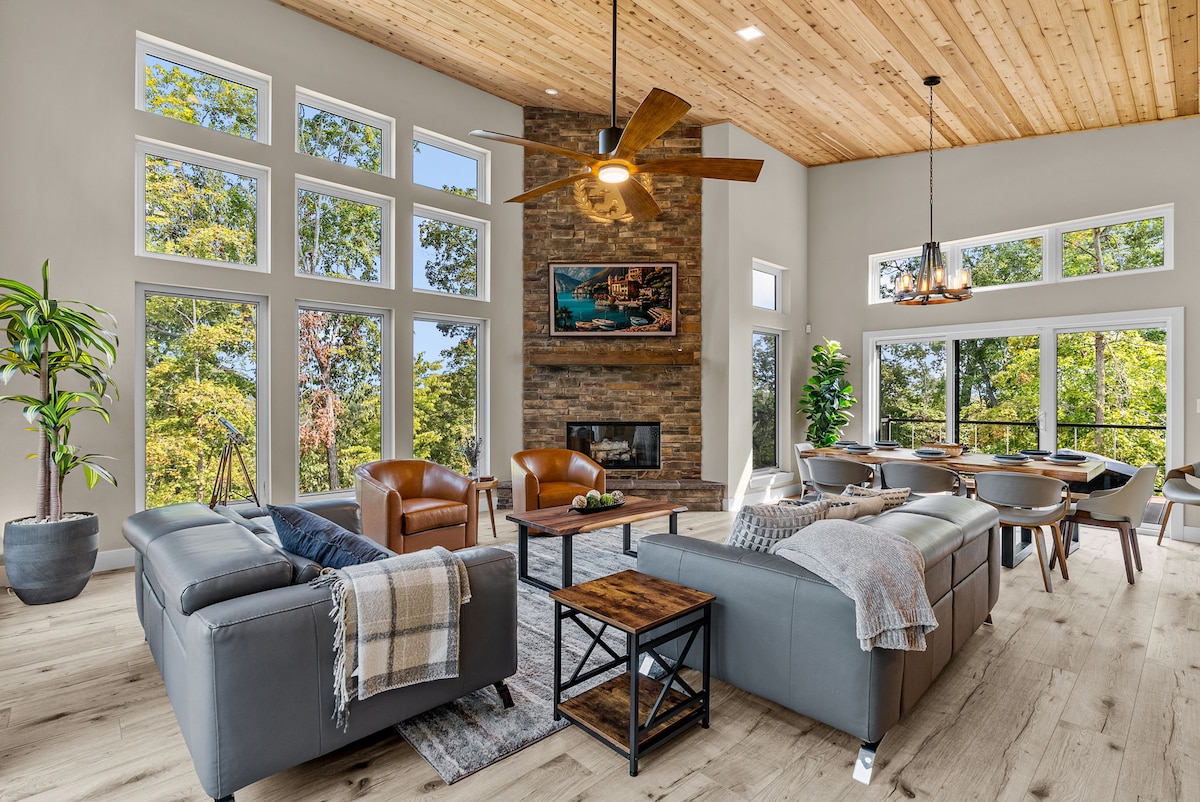 Welcome to The R&R Treehouse Lodge at Innsbrook Resort—a luxurious 5-bedroom getaway perched high among the trees, offering expansive views of the breathtaking Alpine Lake and Missouri landscape. Multiple outdoor decks provide the perfect spot for your morning coffee, evening glass of wine, or simply soaking in the panoramic views. Whether you're seeking adventure or relaxation, The R&R Lodge offers an unforgettable experience, surrounded by nature yet close to all the amenities you need.