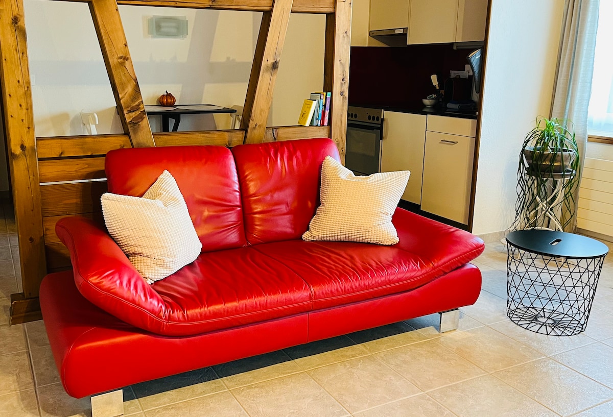 In unserem restaurierten Bauernhaus vermieten wir, verteilt auf 2 Stockwerke, eine gemütliche rollstuhlgängige Attika-Wohnung mit Fahrstuhl. Der obere Schlafraum ist über eine Holztreppe erreichbar (nicht rollstuhlgängig). Meine Unterkunft ist mitten im Dorf auf dem Land, aber doch sehr nah zu den nächsten Städten Frauenfeld & Winterthur. Die Bushaltestelle ist 100m vom Airbnb entfernt. Meine Unterkunft ist optimal für Paare, allein reisende Abenteurer, Businesstrips und Familien (mit Kindern).