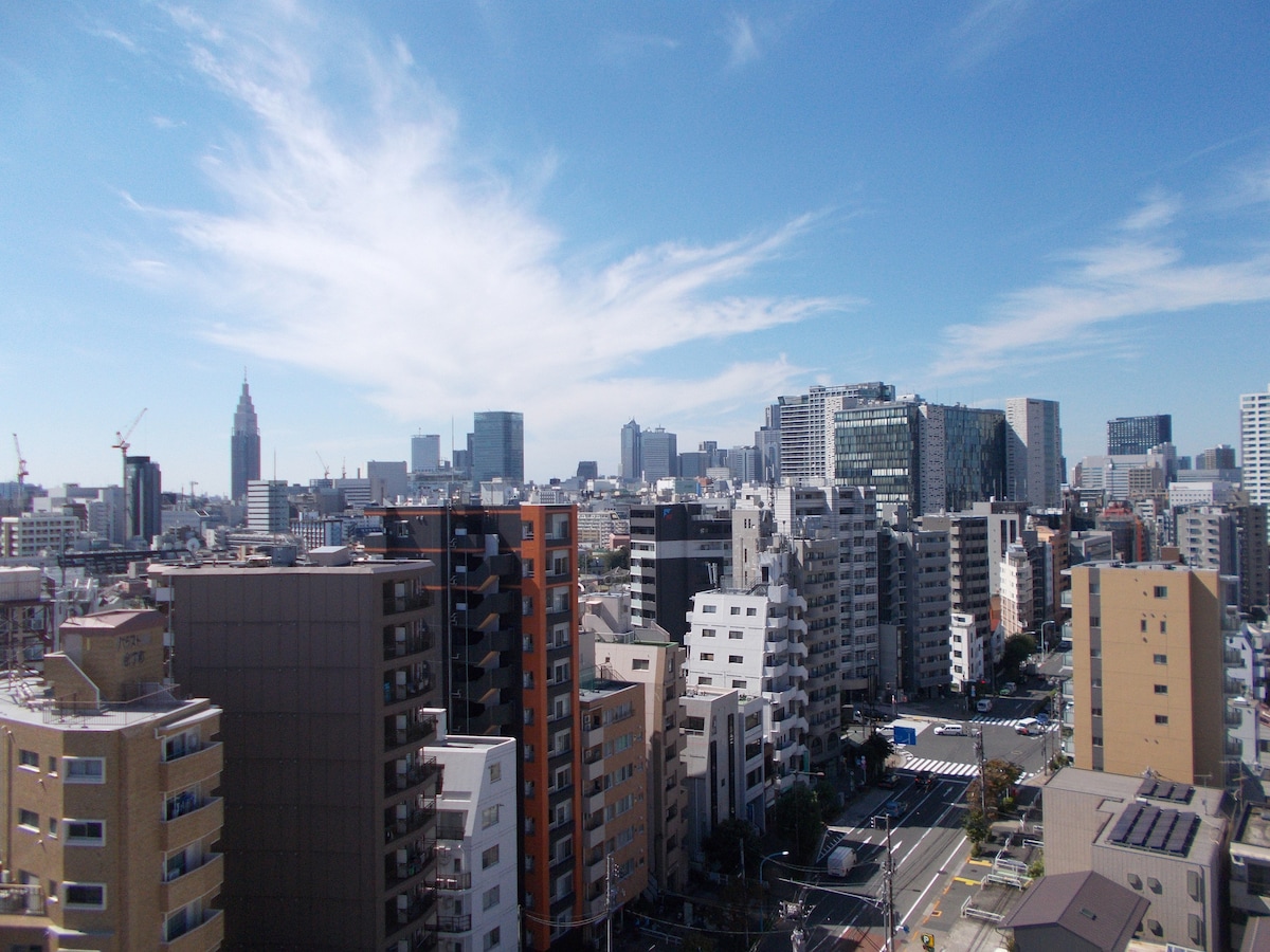 駅徒歩5分/新宿中央公園近く/専用個室・キッチン・トイレ・浴室・Wifi