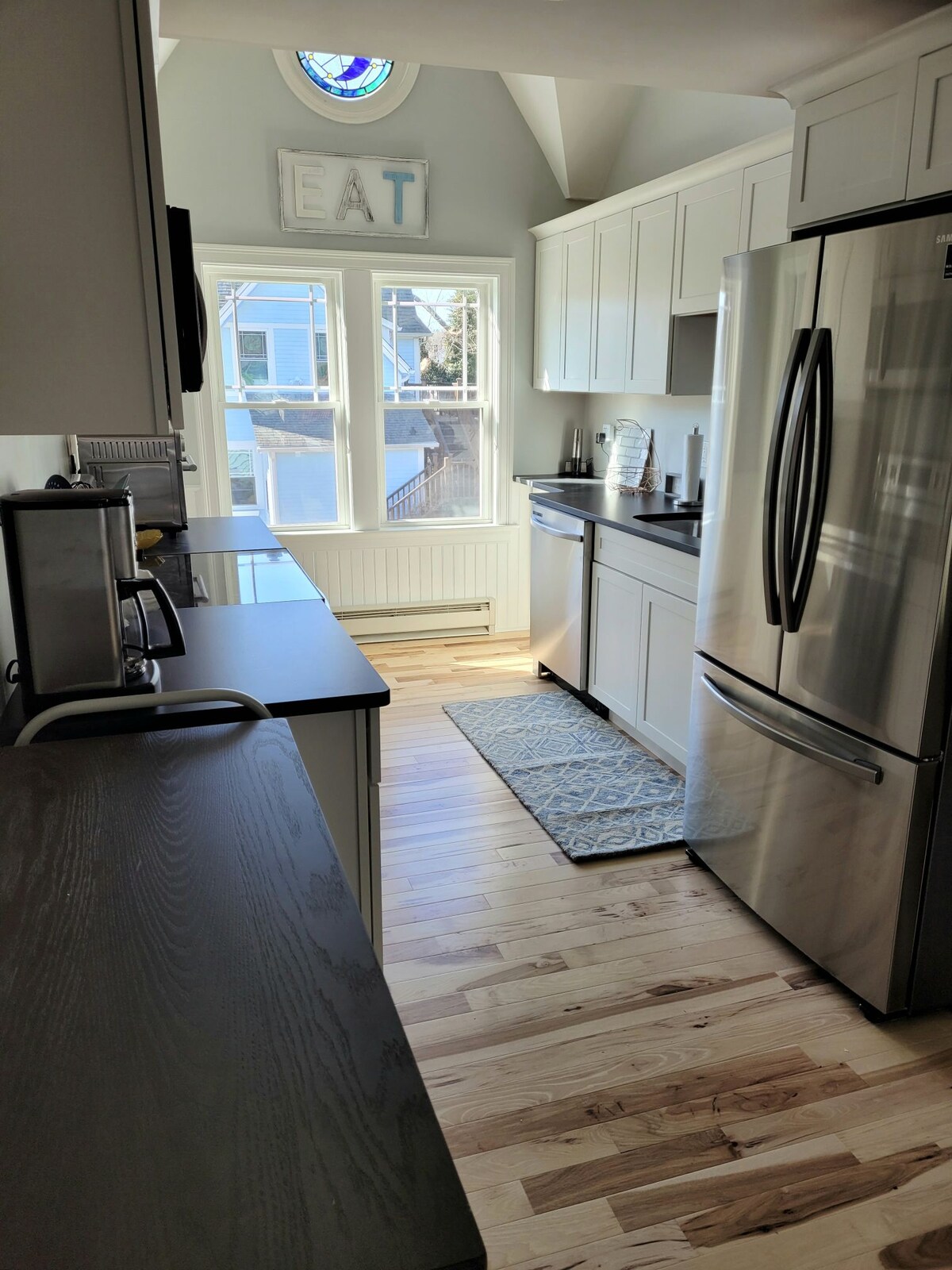 Die Offshore ist eine neu gebaute, luftige und saubere Einzimmerwohnung ĂŒber einem modernen Kutschenhaus, das mit dem gleichen Komfort wie zuhause ausgestattet ist. Die Wohnung liegt sehr zentral und dient als idealer Ausgangspunkt fĂŒr einen Urlaub im SĂŒden von Rhode Island. Du hast die Möglichkeit, den Radweg zu vielen StrĂ€nden und zum Narragansett Pier zu nehmen oder zwei Blocks zur Main Street Wakefield zu gehen, um einen Morgenkaffee im Caf Bar, Phils oder South Country Bread Company zu trinken und nach dem Strand Eis bei Brickley's zu essen.