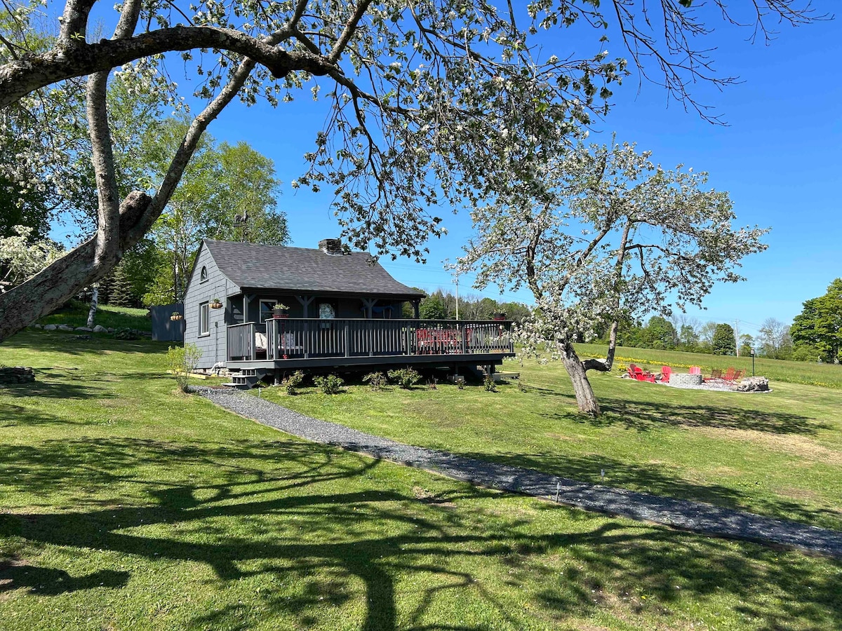 100 Jahre alte, frisch renovierte Hütte, die mitten zwischen fünf 100 Jahre alten Apfelbäumen mit unglaublichem Bergblick liegt. Die Hütte liegt 100 Fuß bergauf von meinem Backsteinbauernhaus aus dem Jahr 1842 und ist von Apfelbäumen, einer alten Ulme, Feldern und meinen Beerenfeldern umgeben. Die riesige Terrasse verfügt über einen Esstisch, viele Sitzgelegenheiten und eine Außendusche. An der Seite der Terrasse befinden sich zwei Klauenfuß-Badewannen mit warmem und kaltem Wasser, in denen du dich entspannen kannst. Beachte, dass die Badewannen in den eisigen Monaten nicht nutzbar sind.