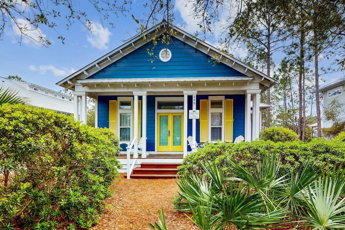 Clean, crisp, cozy, coastal cottage! Adjacent to WaterColor Tennis AND the town of Seaside, this is the BEST location! WaterColor amenities' access included with your stay, in addition to 2 bikes and a 6-seater LSV/golf cart (these rent for ~$150+/day so this is a huge benefit!). Multiple porches for lounging, dining, and relaxing al fresco! Sleeps up to 6 comfortably, an air-mattress is provided to accommodate 2 additional guests!
