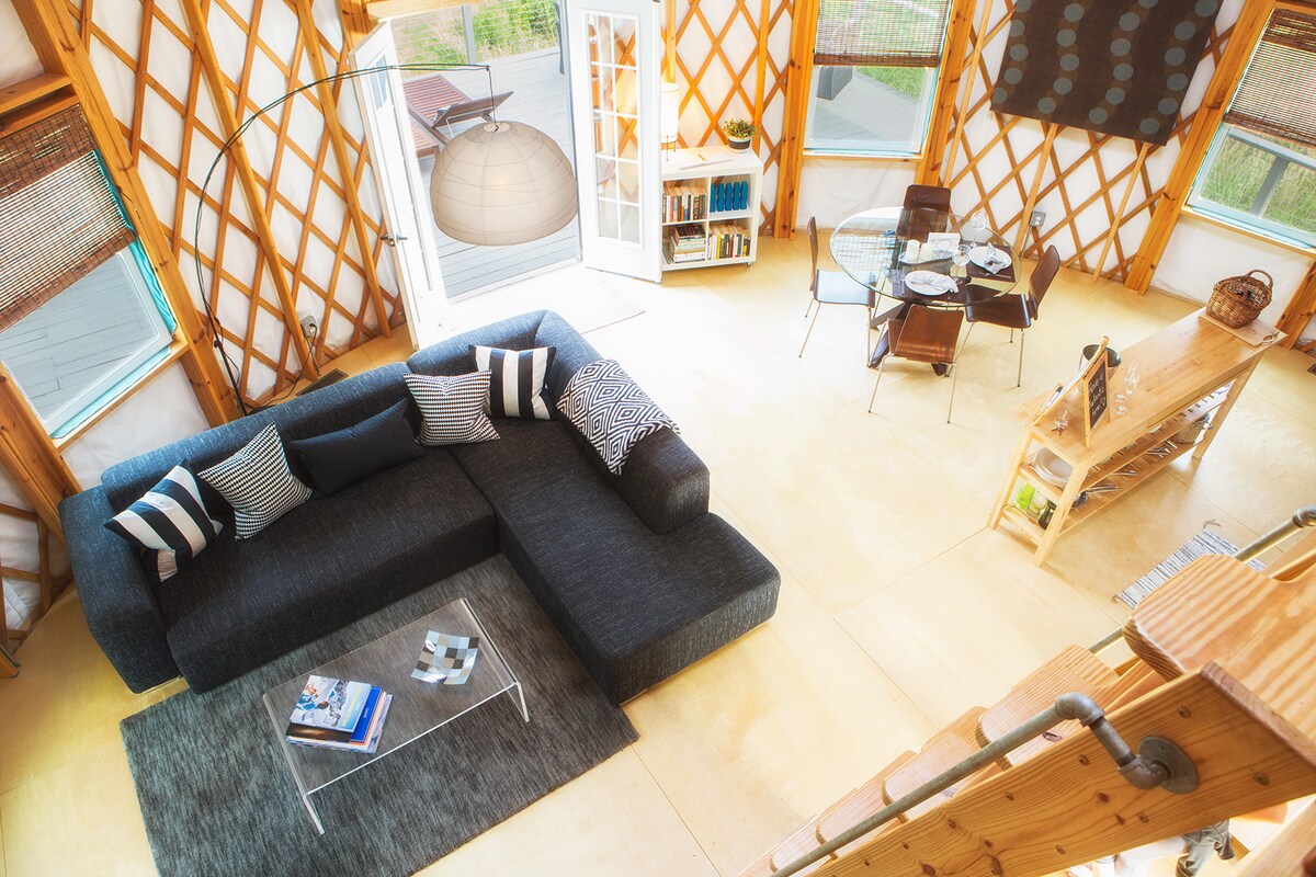 Erlebe Glamping im Blue Ridge-Stil. Unsere Luxus-Jurte befindet sich auf einem kleinen Hügel, in der Mitte eines 70 Hektar großen Bauernhofs, umgeben von natürlicher Schönheit. Die Night Archer Farm befindet sich abseits einer ruhigen Landstraße in Afton, Nelson County. Es ist privat, aber nicht abgelegen. Du bist in der Nähe des Brew Ridge Trails, von Weingütern, Brauereien, Skifahren in Wintergreen, Blue Mountain Brewery, Devil's Backbone, Golf, Wandern oder Fahren auf dem Blue Ridge Parkway. Wandere direkt von der Jurte hinauf in die Berge!