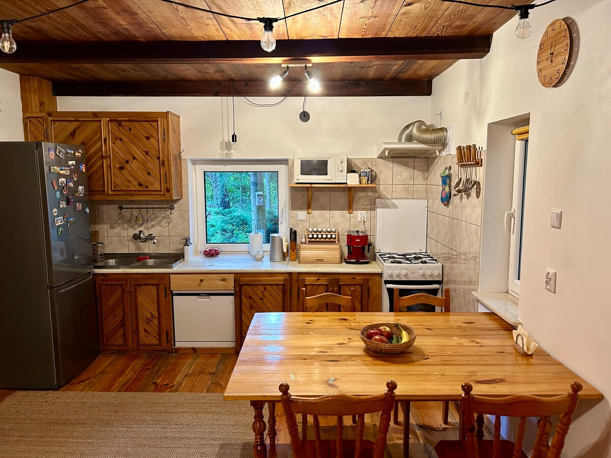 Leśny Strumyk ist eine Oase der Ruhe mitten im Wald, weniger als eine Autostunde von Warschau entfernt. Sie haben das gesamte Ferienhaus auf einem charmanten Grundstück mit eigenem Bach zur Verfügung, das bequem bis zu 8 Personen beherbergen kann. Im September 2025 wurde das Ferienhaus teilweise renoviert und aufgefrischt. Ein Garten-Whirlpool steht den Gästen während ihres gesamten Aufenthalts kostenlos zur Verfügung.