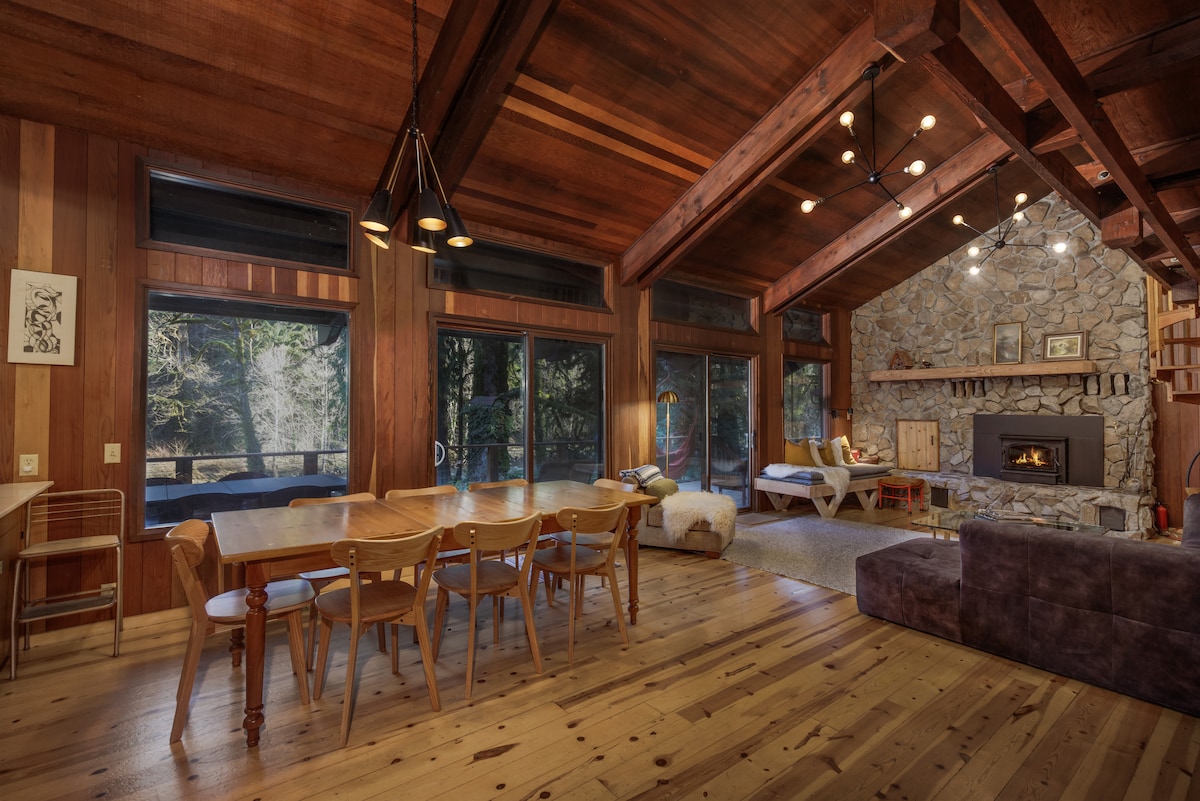 Willkommen im Emerald Fern, einer charmanten Hütte im Herzen von Rhododendron, Oregon. Dieser ruhige Rückzugsort bietet die perfekte Mischung aus rustikalem Charme und modernem Komfort und ist damit ein idealer Ort für Naturliebhaber und Abenteuerlustige gleichermaßen. Dieses Haus aus dem Jahr 1924 bietet einen offenen Grundriss und ist nur einen kurzen Spaziergang von Lebensmitteln und Einkaufsmöglichkeiten entfernt. Im Inneren findest du eine gut ausgestattete Küche, Kirschholzböden, einen Gaskamin, ein Spa und eine Kinoleinwand für gemütliche Abende – und das alles mit Vintage-Flair.