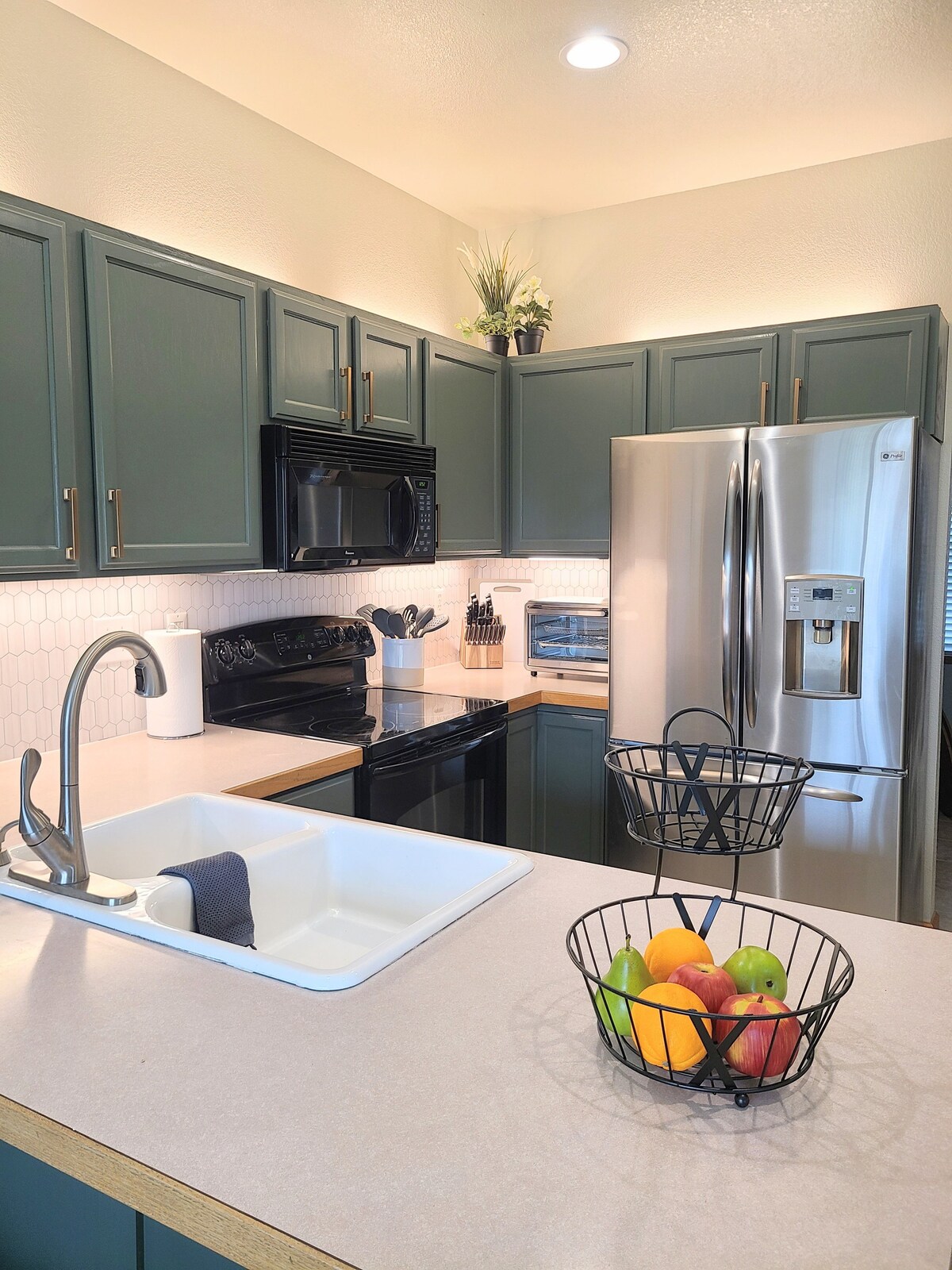 Bring die ganze Familie (einschließlich der vierbeinigen) in dieses sehr komfortable 2800 Quadratfuß große Haus. 3 Schlafzimmer im Erdgeschoss und 1 im Untergeschoss. Das Hauptgeschoss bietet 1 Badezimmer mit einer großen Badewanne mit Massagedüsen und einer separaten Dusche. Der Keller verfügt über einen Wohnraum mit einer riesigen Couch, TV, Shuffleboard und einem kreativen Raum. 1 Schlafzimmer mit 3 Einzelbetten. Der Garten ist rundherum eingezäunt, eine große Terrasse mit vielen Sitzgelegenheiten im Freien und ein Weber Genesis Grill.