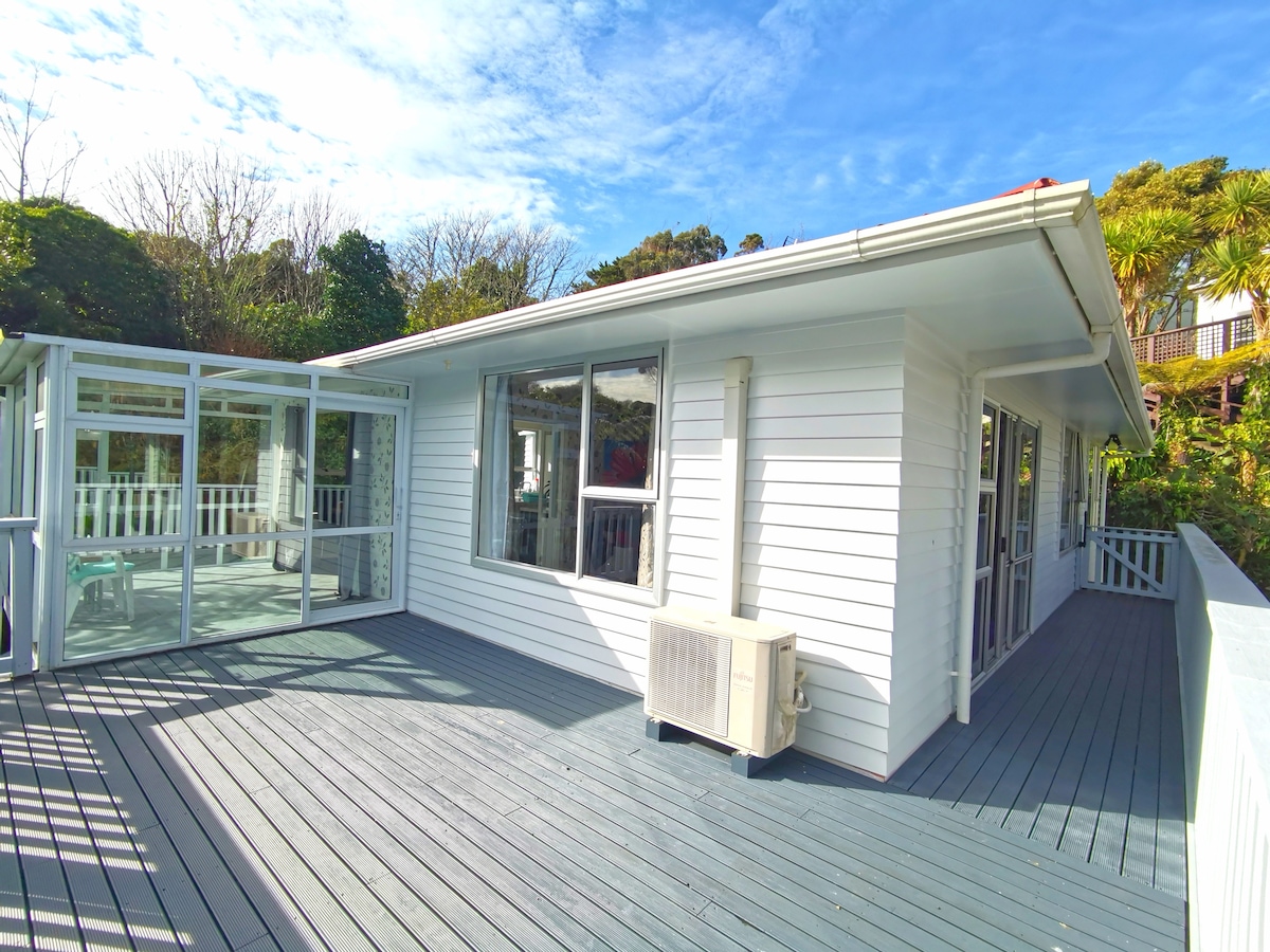 Das Haus liegt nur zwei Fahrminuten von der Autobahn, zwei Minuten vom Einkaufszentrum Johnsonville und nur 10 Fahrminuten vom Wellington CBD entfernt. Im Garten gibt es viele Obstbäume, und man kann auch Vögel singen hören. Ich habe fünf Betten. Eines ist ein Queensize-Bett und die anderen sind Einzelbetten. Normalerweise bereiten wir nur Bettwäsche für ein Queensize-Bett und zwei Einzelbetten vor. Bitte lass mich wissen, wenn du mehr Betten benötigst, damit ich Bettwäsche vorbereiten kann. Dies ist für die obere Ebene und ich wohne unten, Garten alles kann genutzt werden
