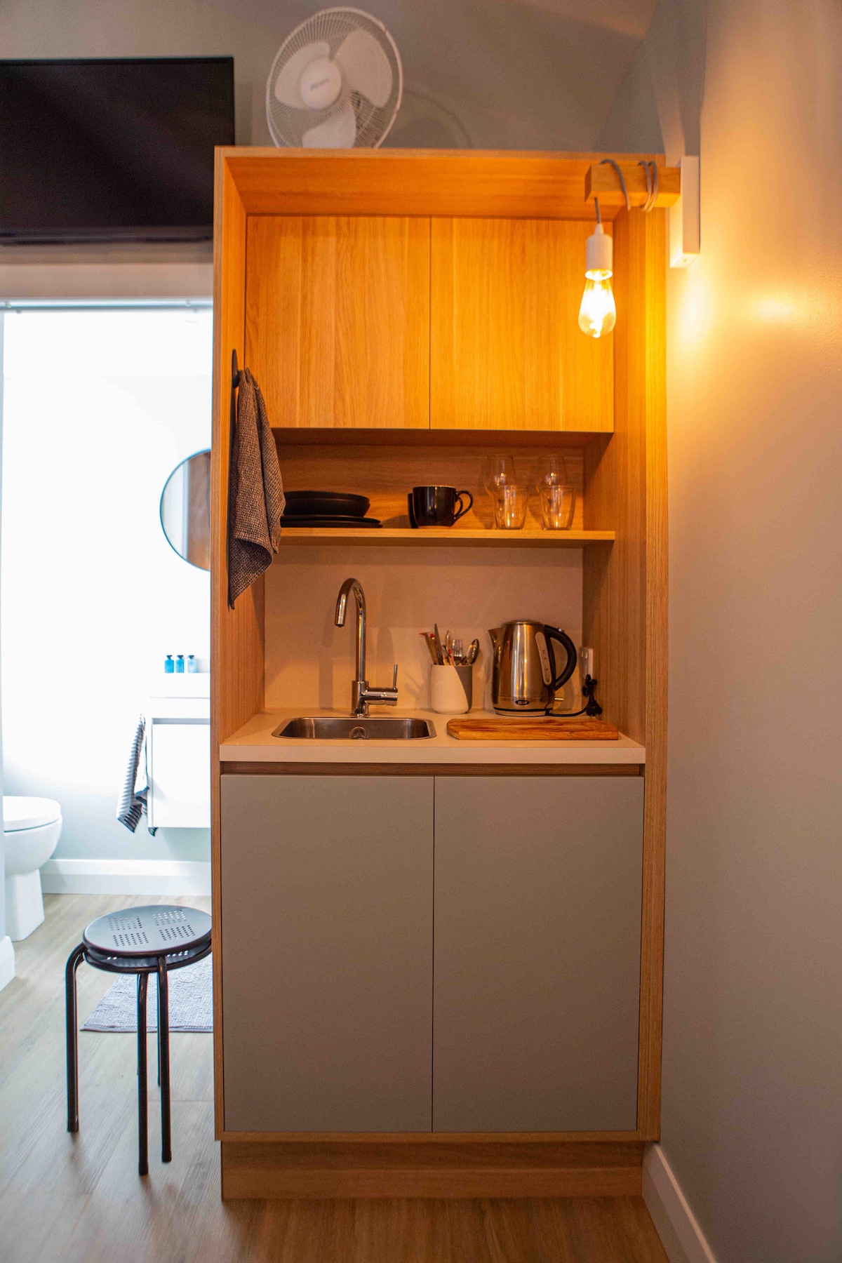 Unser BnB ist gemütlich, ein wenig schrullig und am besten für diejenigen geeignet, die relativ leicht reisen. Das Frühstück mit Selbstbedienung ist enthalten. Es gibt 2 Räume (Schlafzimmer ± separate Küche/Badezimmer), die nur wenige Schritte voneinander entfernt und durch einen überdachten Gehweg verbunden sind. Das gemütliche Schlafzimmer verfügt über ein Queensize-Bett, einen Schreibtisch zum Arbeiten oder Essen, gutes WLAN und bequeme Sitzgelegenheiten. Die Küche ist komplett zum Kochen ausgestattet und das Badezimmer verfügt über eine tolle Dusche. Die Ecke außerhalb des Schlafzimmers ist perfekt für einen Morgenkaffee.