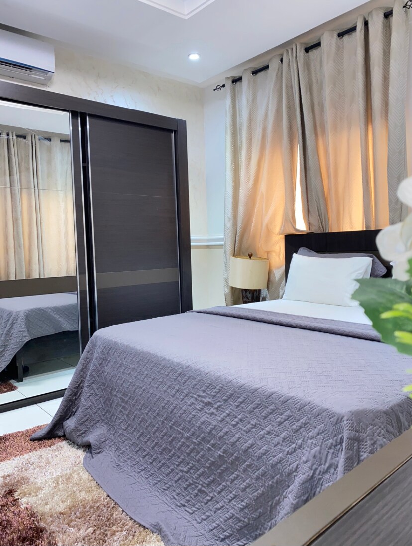 Genieße den Glamour dieser stilvollen, gehobenen Unterkunft. 5 Fahrminuten vom Flughafen und 3 Fahrminuten von der Accra Mall entfernt. Erstklassige Lage im Herzen von Accra - Glasfaser-WLAN - Business Ultra DSTV - Frühstück vor Ort - Smart TV+ Apple Airplay Brettspiele - Bücher - Fitnessstudio - Wachdienst und Rezeption rund um die Uhr - Schwimmbad - Generator verfügbar - Wassertanks - Ruhige Umgebung - Parkzone - Reinigungsdienst - Wäscheservice - Geeignet für einen Langzeitaufenthalt