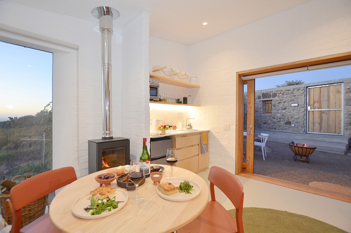 Mach es dir in diesem einzigartigen und ruhigen Rückzugsort gemütlich. Gehe hinaus in einen sonnenverwöhnten Garten voller Olivenbäume, Lavendel und dem sanften Summen des Landlebens. Unter einer mit Weinreben bedeckten Pergola laden ein langer Bauernhof-Tisch aus Holz und Bänke zu gemütlichen Mahlzeiten und einem Glas Wein aus der Region ein. Im Herzen von Koringberg gelegen, ist dieser charmante Rückzugsort umgeben von Weizenfeldern, Naturpfaden und dem ruhigen Rhythmus des Swartland.