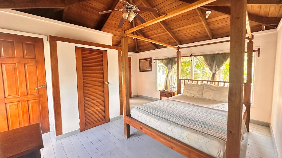 Die Crabby Cabin ist eine wunderschöne Hütte für 2 Personen. Sie verfügt über eine abgeschirmte Veranda, um deinen Morgenkaffee zu genießen und dem Meer zu lauschen. Sie verfügt über eine voll ausgestattete Edelstahlküche und ein privates Steinbad. Sie verfügt über ein Queensize-Bett, Klimaanlage, WLAN und einen Smart-TV. Sie ist ein Gebäude vom Strand entfernt, sodass deine Zehen innerhalb von etwa 35 Schritten den schönen Sand berühren. Dies ist unsere kleinste Villa im Inselstil auf dem Grundstück mit 13 x 16 - 205 Quadratfuß.