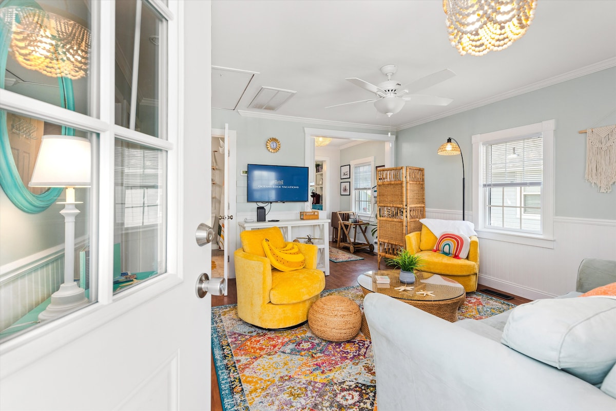 Dieses charmante OC-Studio verspricht nichts als gute Laune! Das Studio verfügt über ein komplettes Badezimmer, einen offenen Raum mit einem elektrischen Kamin, eine voll ausgestattete Küche sowie eine Waschmaschine und einen Trockner. Entspanne dich auf dem privaten Balkon, trinke einen Drink in einem Hängestuhl oder speise am Terrassentisch. Die Nähe zum Jolly Roger Amusement Park und zum Splash Mountain Water Park trägt zur Aufregung bei, während zahlreiche Restaurants und Geschäfte nur einen kurzen Spaziergang entfernt sind. Der Strand und die Promenade sind nur ein paar Blocks von deiner Haustür entfernt!