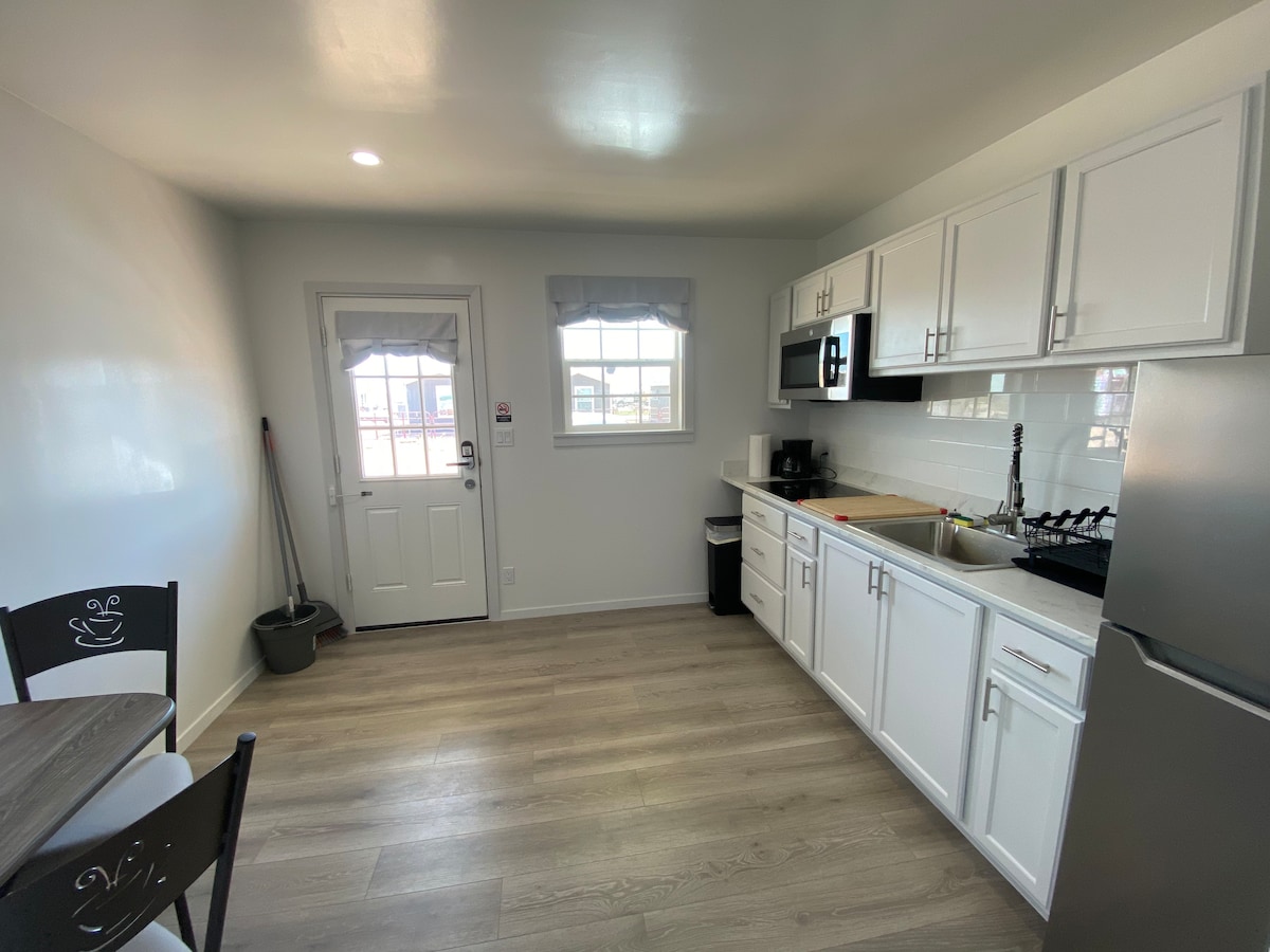 Willkommen in deinem privaten Rückzugsort in West Texas! Diese freistehende Unterkunft ist für Komfort, Privatsphäre und Bequemlichkeit ausgelegt. Im Inneren finden Sie ein weiches Queensize-Bett, eine Waschmaschine und einen Trockner in der Unterkunft, eine kompakte Küchenzeile mit Kochfeld und Kühlschrank sowie einen Smart-TV und Glasfaser-Internet für Unterhaltung und Produktivität. Jede Einheit ist vollständig freistehend, d. h. es gibt keine gemeinsamen Wände und keinen Lärm von Nachbarn – nur Ruhe und Frieden während Ihres Aufenthalts. In der Nähe von Restaurants, Einkaufsmöglichkeiten und den wichtigsten Straßen von Odessa gelegen.