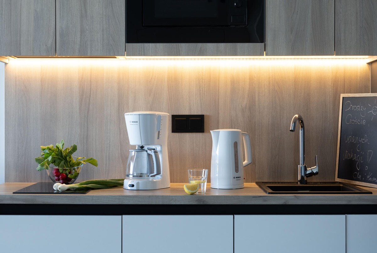 A brand new, cozy and stylish apartment in a newly built multi-apartment building. It is situated between the Baltic Sea and the Resko Przymorskie Lake, just a stone’s throw from the beach. It is surrounded by a pine forest, within walking distance from a fishermen village of Rogowo to one direction and Dźwirzyno to the other. It has a surface of 32 sqm and it is located on the 4th floor facing east and overlooking a patio .
