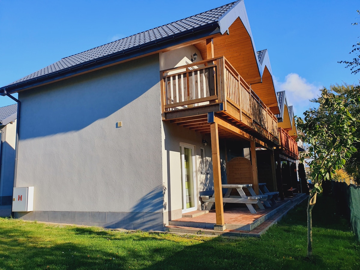 Nowy domek oddany do użytkowania czerwiec 2021. Zbudowany z drewna modrzewiowego. Dla 11 gości. Parter duży salon ok. 40m² z aneksem kuchennym ok. 10m² plus łazienka i pomieszczenie gospodarcze. Całość klimatyzowana. Na piętrze 3 sypialnie plus druga łazienka. Oraz atrakcyjna antresola z siatką do leżenia pod przeszklonym dachem. Na zewnątrz taras z drewna modrzewiowego o powierzchni 40m². Do plaży 150 m. Plaża z atrakcjami dla dzieci, sprzętem pływającym, nowo oddaną luksusową restauracją.
