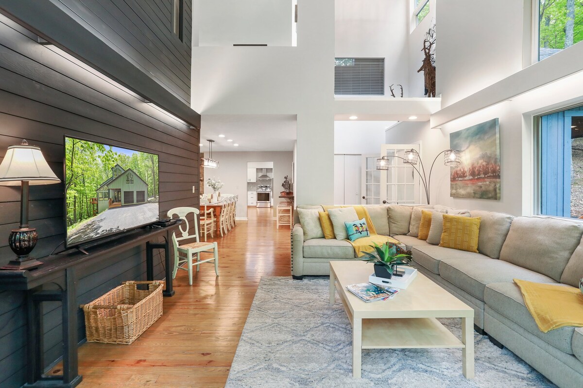 Entfliehe unserer gemütlichen, farbenfrohen, familienfreundlichen Hütte, ohne weit zu gehen. Beobachte den Sonnenuntergang über dem Wald vom Deck aus, sterne am A-Rahmen-Fenster oder spiele Tischtennis in unserem Spielzimmer. Arbeite in unserem Büro mit Blick auf die Bäume. Genieße Golf, Pools, das Spa, Wandern und Angeln oder erkunde die wunderschöne Landschaft des ländlichen West Virginia. Das Beste ist, dass unsere Hütte weniger als zwei Stunden Fahrt von D.C. und Baltimore entfernt ist, sodass man sich ohne lange Fahrt weit weg fühlt.