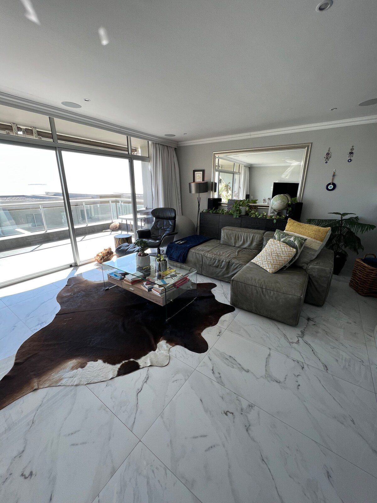 Mit deinem eigenen privaten Kinosaal mit Blick auf den Strand und einem riesigen 70-Zoll-TV ist dies ein Genuss, den du an dieser Strandpromenade nirgendwo anders finden wirst. Die Einheit, die die gesamte obere 10. Etage einnimmt, ist dieses Sunny Beach Penthouse luxuriöses Wohnen mit Blick auf den legendären Tafelberg und Robben Island. Nach Norden ausgerichtete Räume bringen die warme Sonne herein und halten dich auch im kalten Winter kuschelig warm. Mit dem herrlichen Muschel-Thema ist dies Strandleben vom Feinsten!