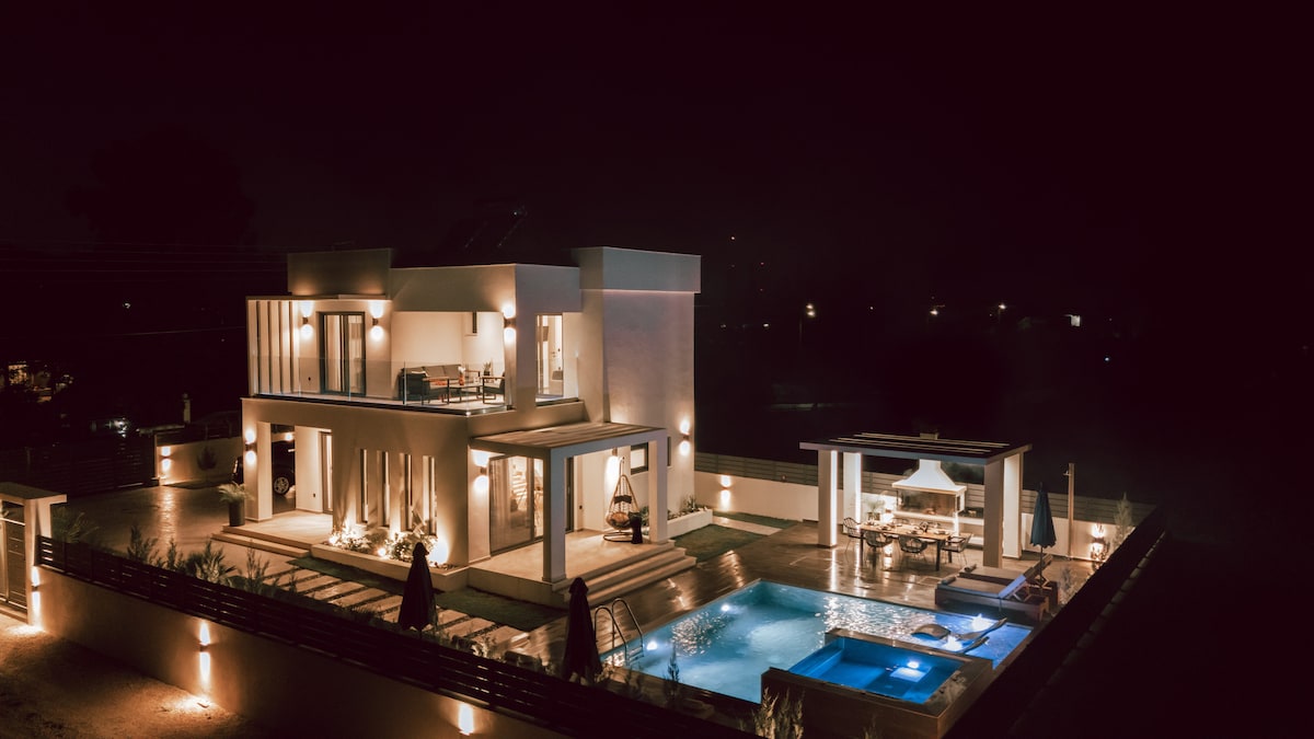 Escape to Enervillas, winners of the Tourism Awards 2019. Our Passive House certified villas in Kato Alissos, Patra, offer luxury and sustainability. Enjoy private pools, gardens, BBQ areas, and Smart Home technology. Ideal for families and groups, with stunning views and proximity to top beaches and cultural sites. Experience eco-friendly luxury with high-speed internet, VR entertainment, and free EV charging. Relax in spacious accommodations perfect for up to 19 guests. Book now!