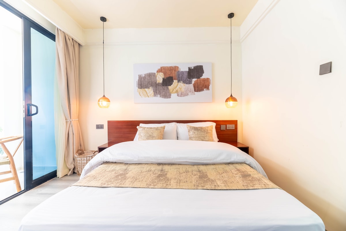 Ein ruhiger, stilvoller Rückzugsort im Herzen von Kilimani. Diese durchdacht gestaltete Wohnung verbindet warme Erdtöne, sanfte Beleuchtung und natürliche Texturen, um einen gemütlichen, modernen Aufenthalt zu schaffen. Entspannen Sie sich im sonnendurchfluteten Wohnzimmer mit seinem rostfarbenen Sofa und kuratierter Kunst, genießen Sie Mahlzeiten im eleganten Essbereich oder kochen Sie in der voll ausgestatteten Küche. Entspanne dich abends in einem ruhigen Schlafzimmer. Perfekt für Alleinreisende, Paare oder Familien, die Komfort, Stil und Bequemlichkeit suchen.