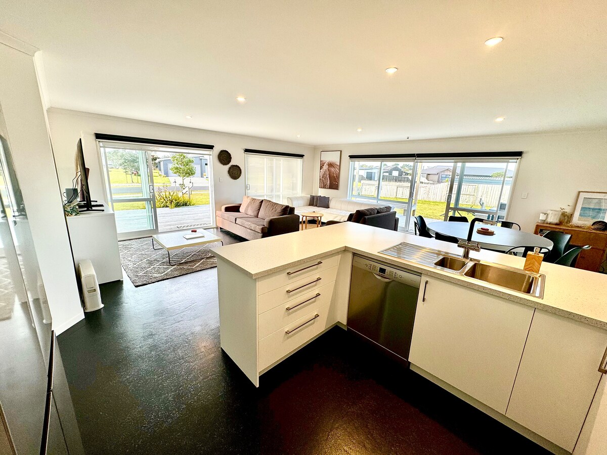 Modern Matarangi Escape | Beach + Golf Views