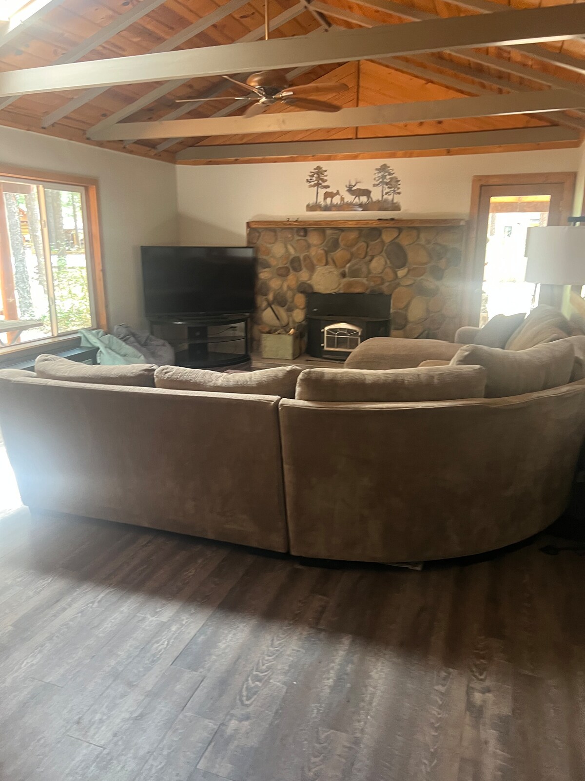 WOW... Dies wird der erste Gedanke sein, der dir in den Sinn kommt, wenn du die Tür unserer einzigartigen Hütte betrittst. Professionell von Grund auf neu gestaltet, verfügt diese Hütte über Folgendes: - Die Hauptkabine verfügt über drei Schlafzimmer, zwei Badezimmer und ein Loft im Obergeschoss mit sechs Etagenbetten für 12 Personen. - Die freistehende Garage verfügt über eine Spielhalle und ein Spielzimmer. - Über der Garage befindet sich ein privates Studio mit eigener Küche, Bad, Kingsize-Bett und Waschküche für zwei Personen (zusätzliche Gebühr von 97 US-Dollar).