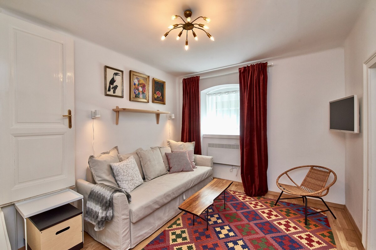 Im 1. Stock gelegene 50m2 Wohnung mit 1 Schlafzimmer mit Doppelbett, großer Wohnküche mit Doppelschlafcouch und Pelletofen; dazu ein Badezimmer mit Badewanne, Fussbodenheizung und Blick auf das Ottohaus/Rax. 100 Jahre alte Schiffböden, gemütliche Sofas und Lesesessel, Flachbildschirm mit SAT Anschluss und DVD Player sowie eine Auswahl von Filmklassikern für verregnete Abende. Saunazugang und Gartenbenützung inklusive.